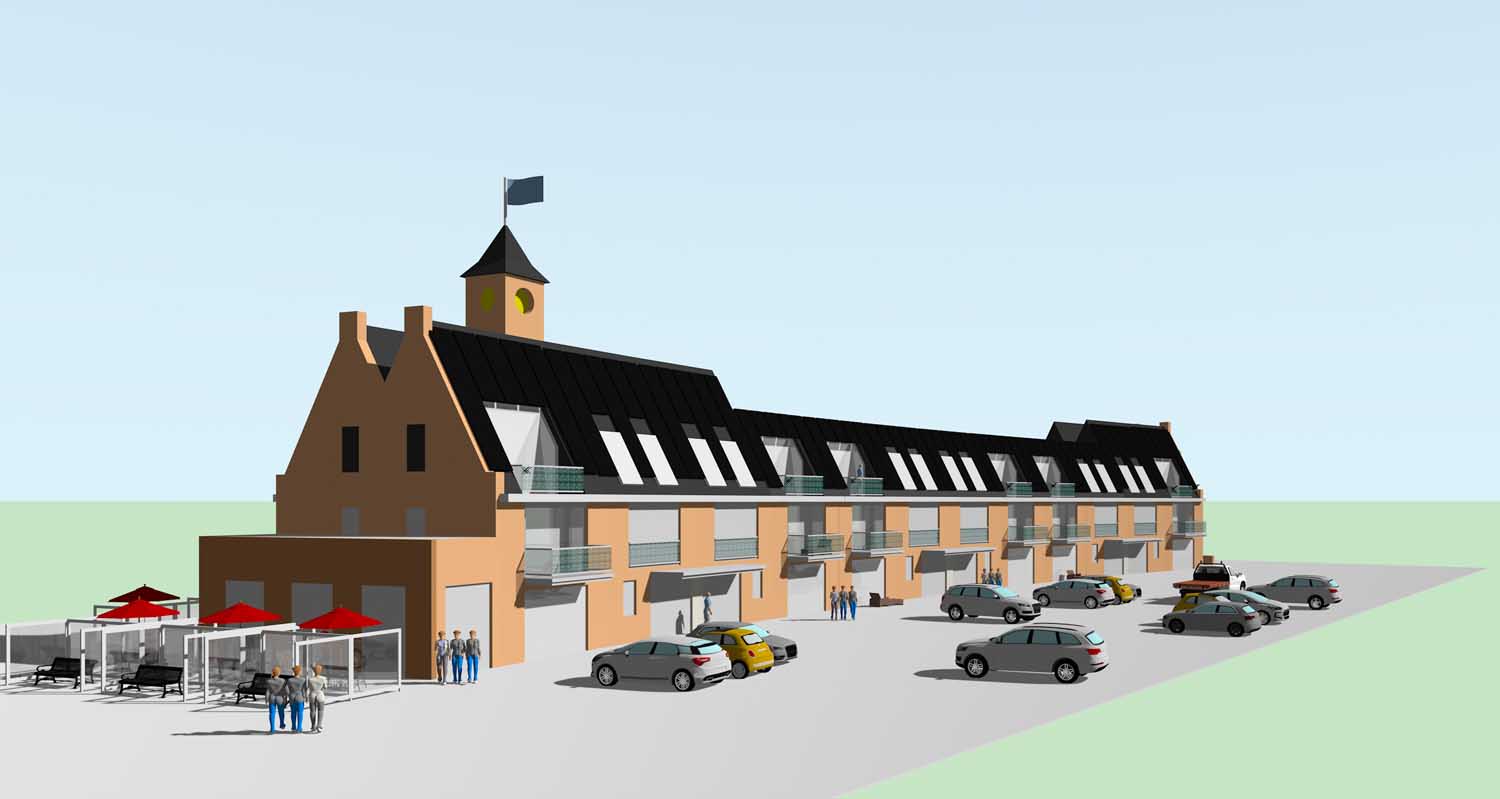 Voor een verlaten locatie is een alternatief voorstel uitgewerkt dat zich als gebouw in de duinen manifesteert.