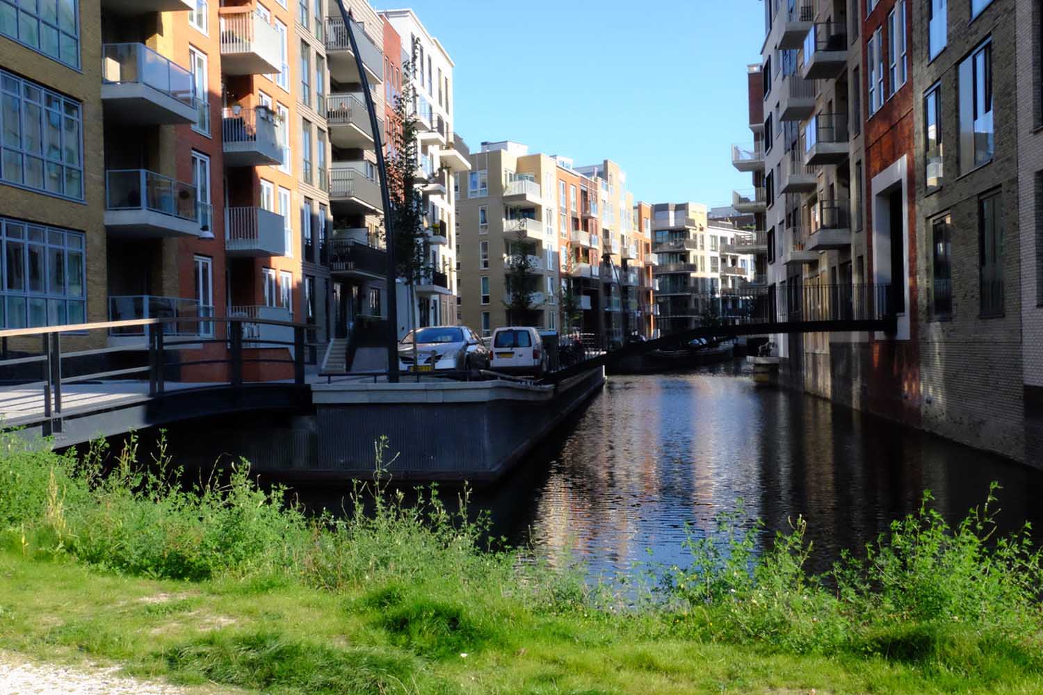 Het water in de grachtjes compenseert het gebrek aan natuur maar zeer ten dele. Het lage peil voelt erg afstandelijk en het water wordt niet gebruikt. Nergens is er een teken dat de grachtjes bij het wijkleven horen. Het is niet geschikt gemaakt om te schaatsen of spelenvaren, nergens trappetjes of voorzieningen om bijvoorbeeld even af te meren. Bosse vindt de visvergunningen in de Franse nieuwbouwwijk Le Plessis-Robinson geniaal.