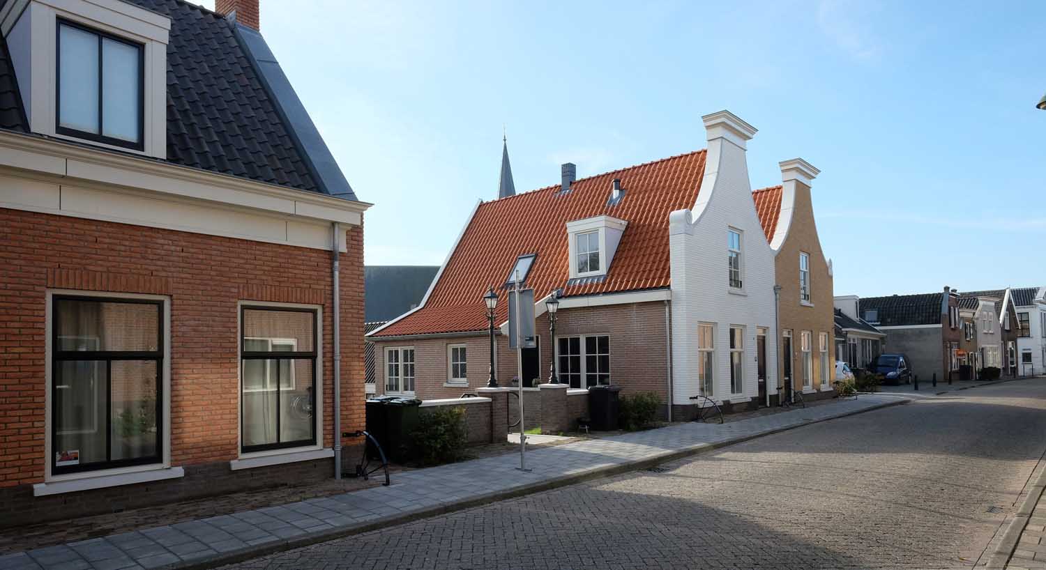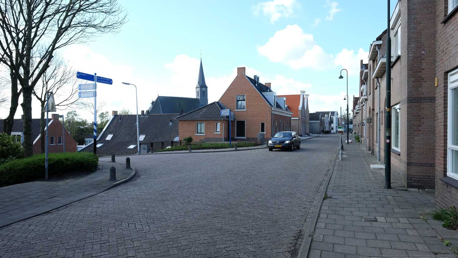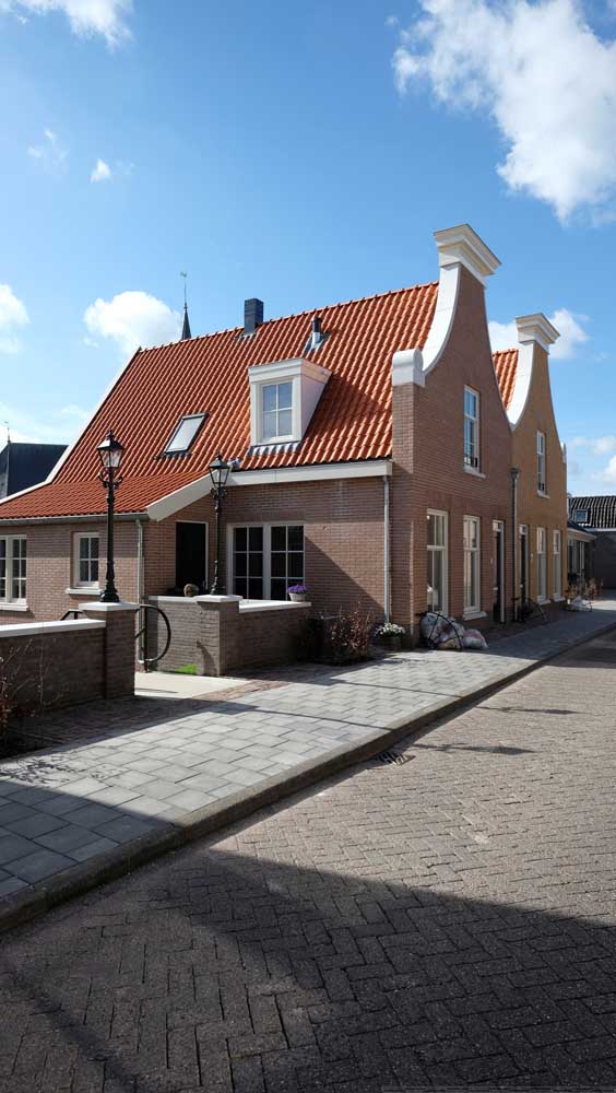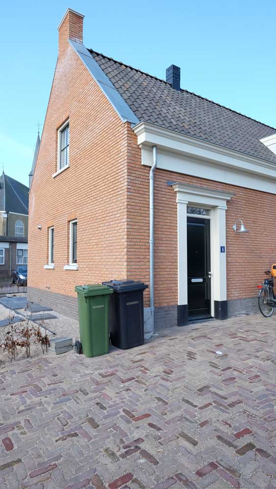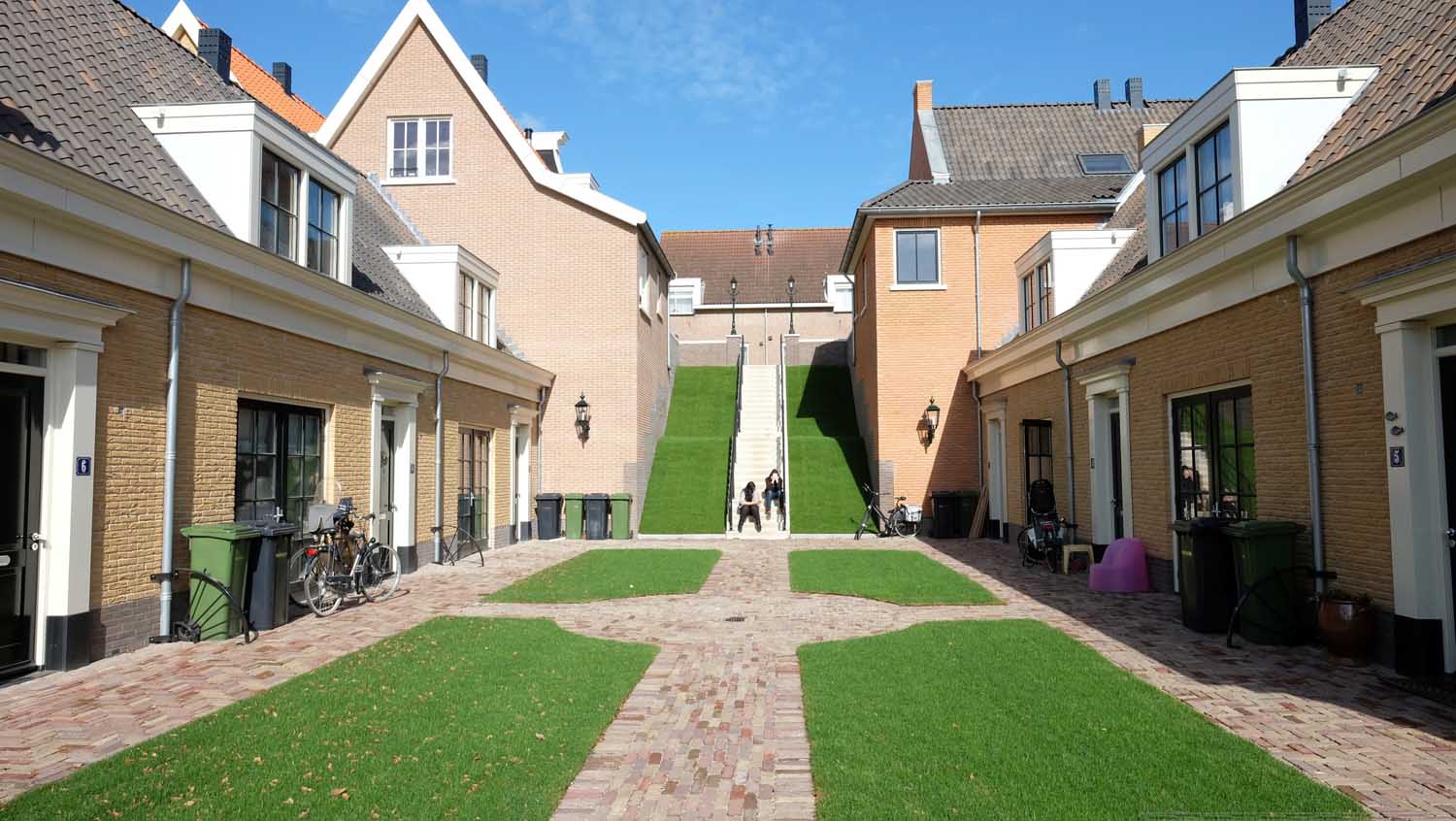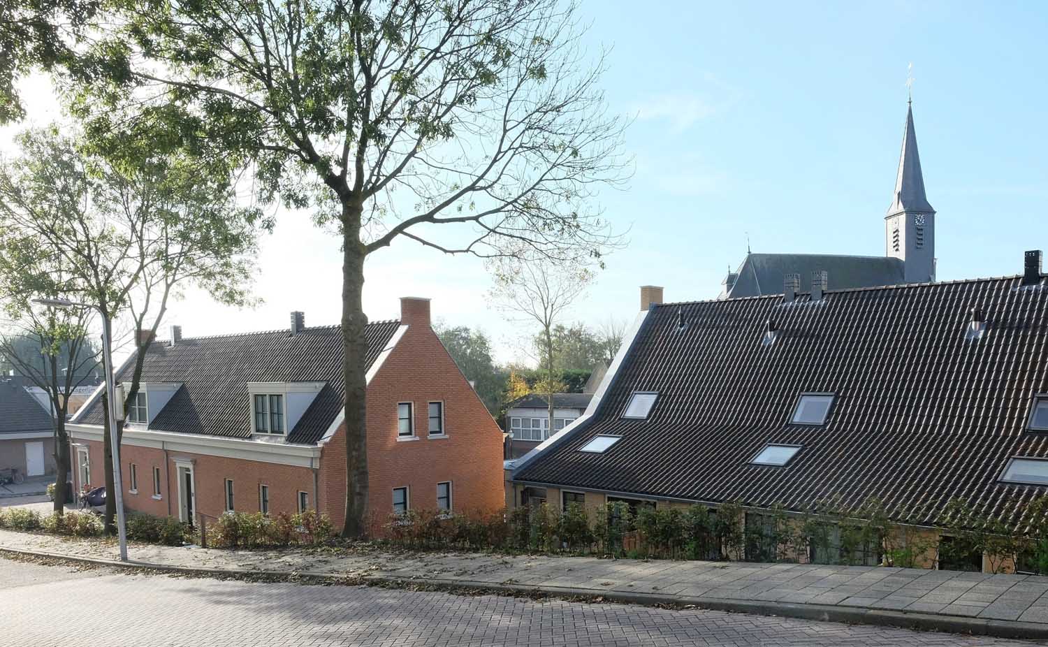 Hiertussenin een dijktrap eindigend in een kleine hof tussen 2x 3 woningen. Langs de Essendreef als afscherming van de parkeerkofer een tweetal langgerekte woningen. Een drietal woningen tegenover de kerk konden helaas niet tijdig worden gerealiseerd.