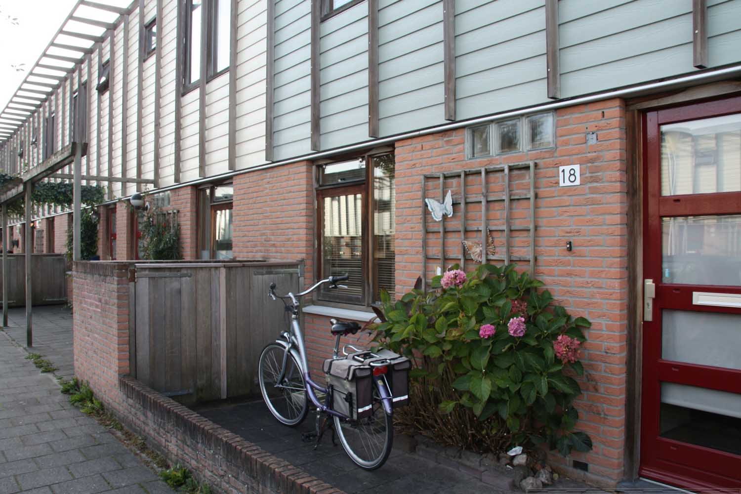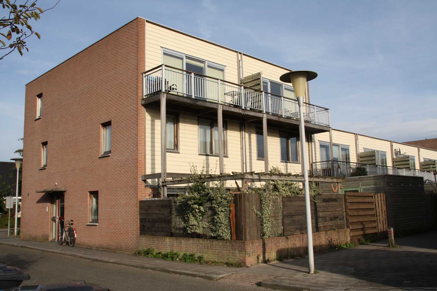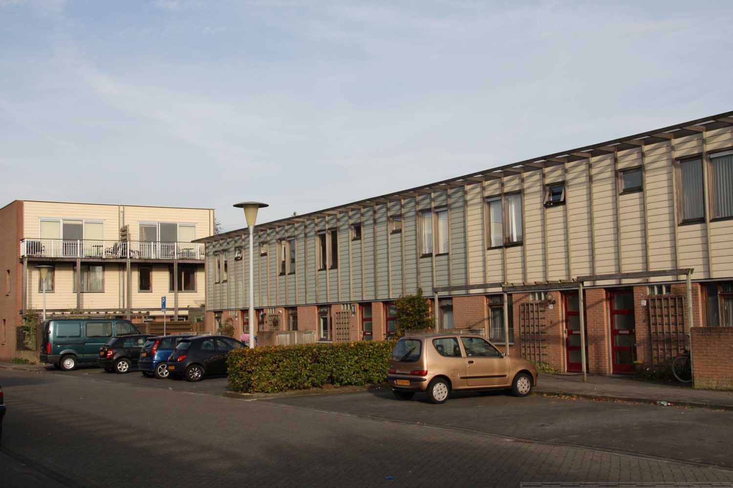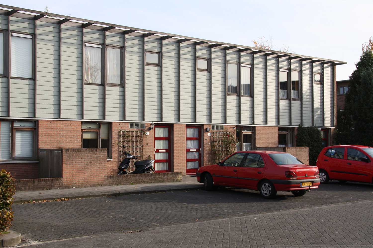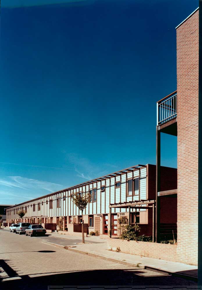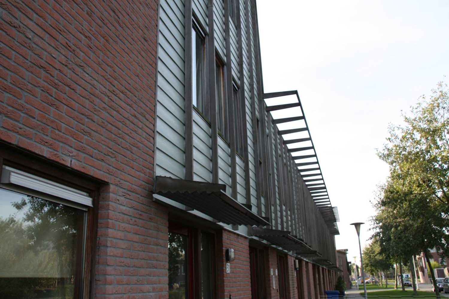 Dat realiseerden in een in hoge mate geprefabriceerd project. Prefab beton funderingen, een prefab beton casco en gevelsluitende elementen van een houtskelet met vezelcement gevelbekleding. Metselwerk is niet hoger toegepast dan bovenkant deur: dat bespaart latei-konstrukties en steigerwerk. Schilderwerk is weggelaten door een combinatie van Western Red Cedar en hardhout toe te passen. De prefab frames sluiten de architectuur aan de bovenzijde af. Tuinmuurtjes, een eigen stoep en containerbergingen maken de entree aan de straat af.