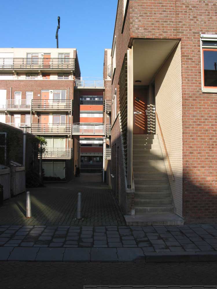 De gebouwen zijn gescheiden met stegen waar kleinere blokjes woningen staan.