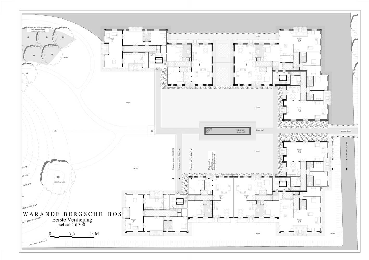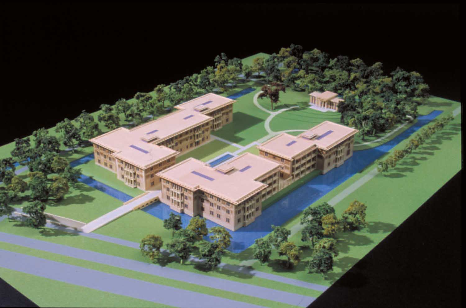 Voor een competitie is een plan gemaakt voor een landgoed bij Rotterdam. Gekzozen is voor een U-voirmig ensemble van appartementengebouwen rond een vijver tegen een helling waarop een tuinkoepel is een ontworpen. In de tuinkoepel keuken en sanitair, een ontvangstruimte voor gelegenheden en logeergelegenheid voor gasten. De ondergrondse parkeerkelder is ontsloten via een ondergrondse toegangsdam waarover heen een voetgangersbrig voert. De architectuur is lichtvoetig en rijk.