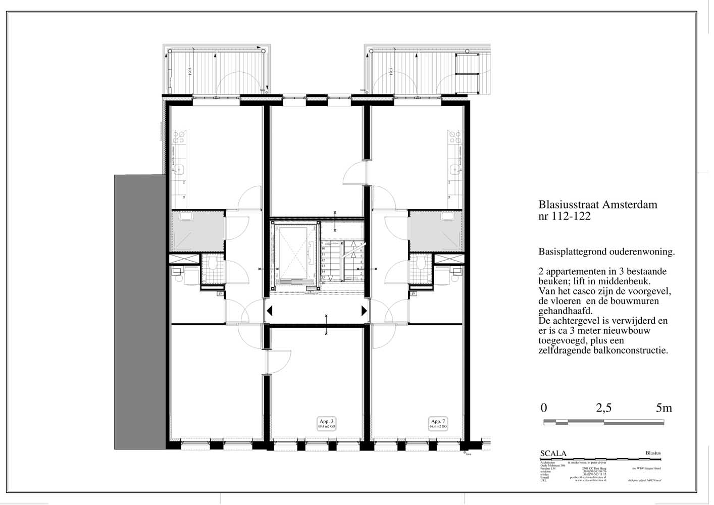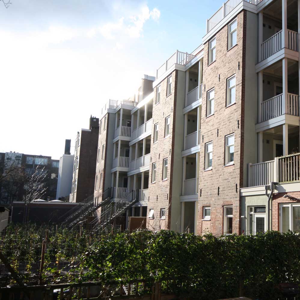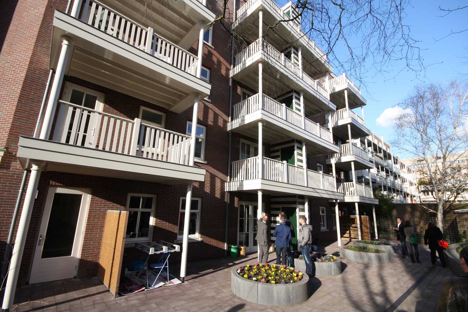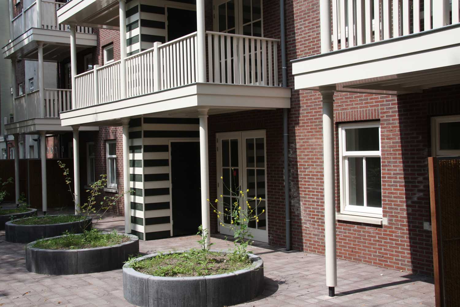 In het rechterdeel, nrs 92-106, zijn 36 koop-appartementen gerealiseerd, kleine etages voor starters. In het linkerdeel, nrs 112 – 122, zijn 18 appartementen voor ouderen gerealiseerd, in de sociale huur sector.