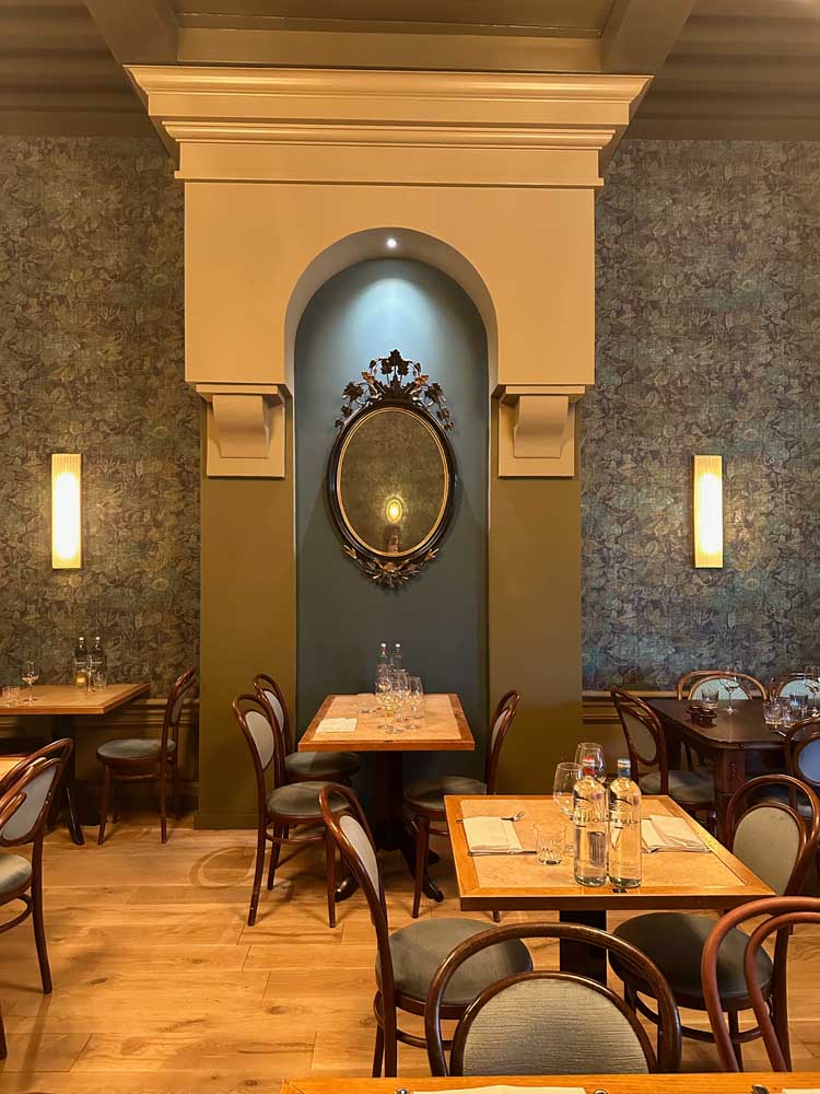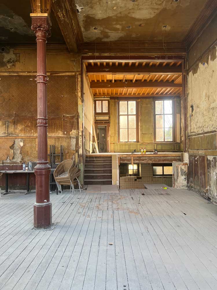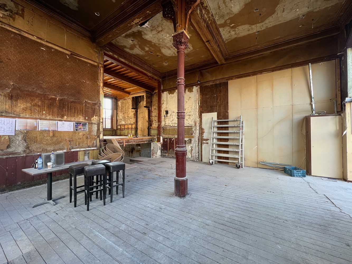 In 2022 verwierf Maarten Hinloopen van de Boterwaag de pacht. Het interieur werd voorzichtig gestript van verlaagde plafonds, voorzetwanden, toegevoegde inventaris. En daaronder bleken verbazingwekkend veel sporen aanwezig van de verschillende gebruikers. Behalve behangsels waren dat lambrizeringen, deels uit de bouwtijd, deels uit begin 20e eeuw. Stadsherstel financierde een bouwhistorisch en kleurhistorisch onderzoek. In alles ademde de hoge ruimte met zijn fraaie grote vensters en vele bruintinten de sfeer van een Brussels etablissement. Er waren tegenslagen in de funderingsconstructie, die een snelle aanpak vroegen en bij werkzaamheden aan de kelders kwamen de oorspronkelijke beerput en waterkelder vrij.