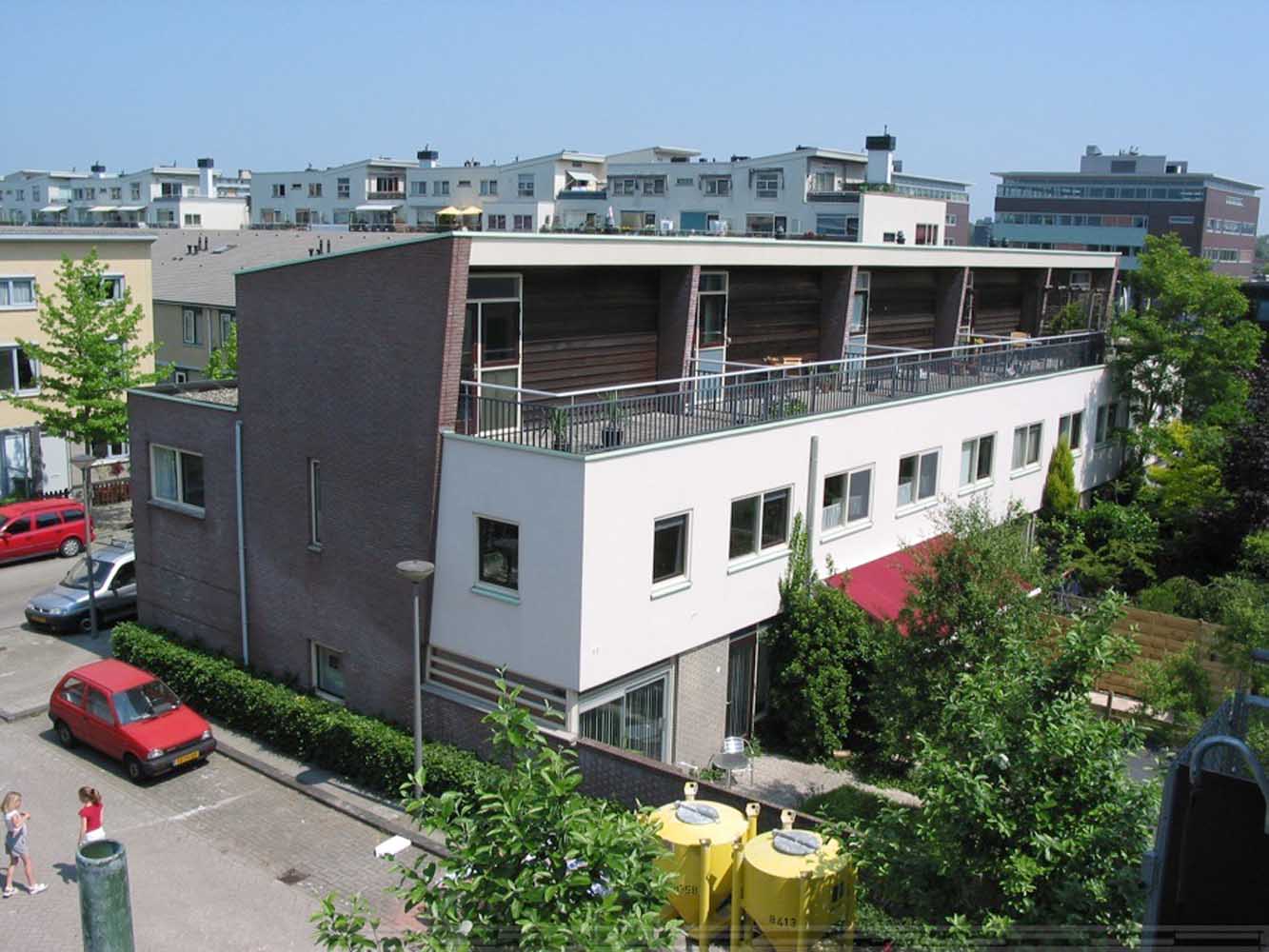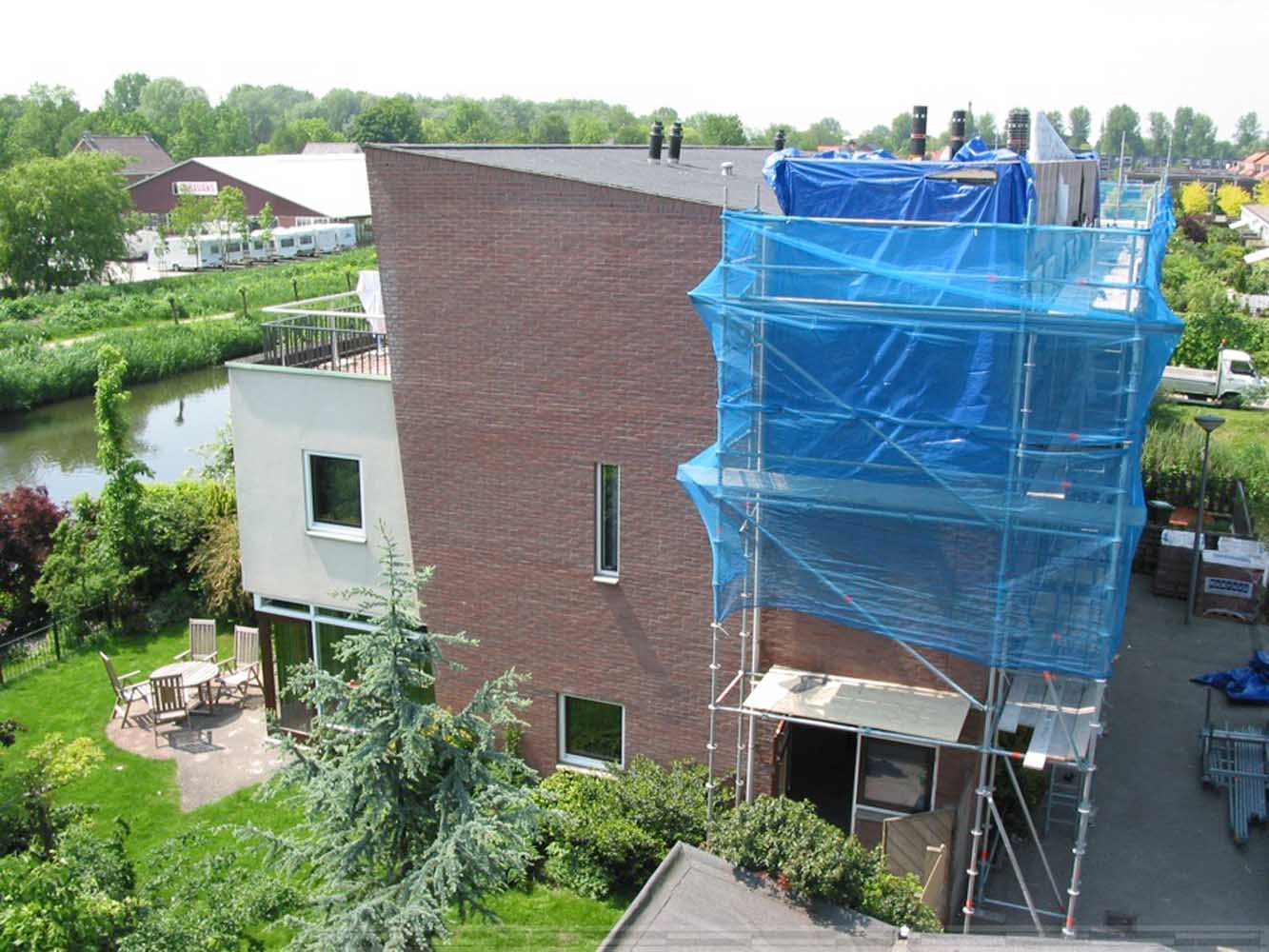 Op een eerder gerealiseerd project van eengezinswoningen in Sloten werden de dakopbouwen uitgebreid.