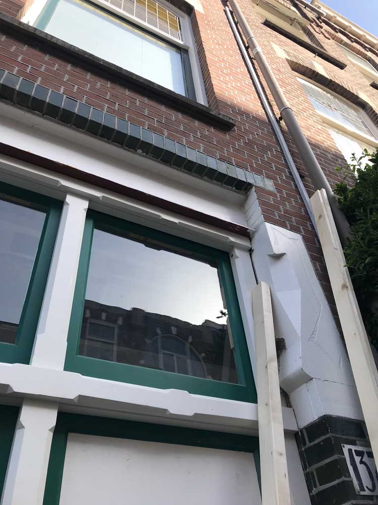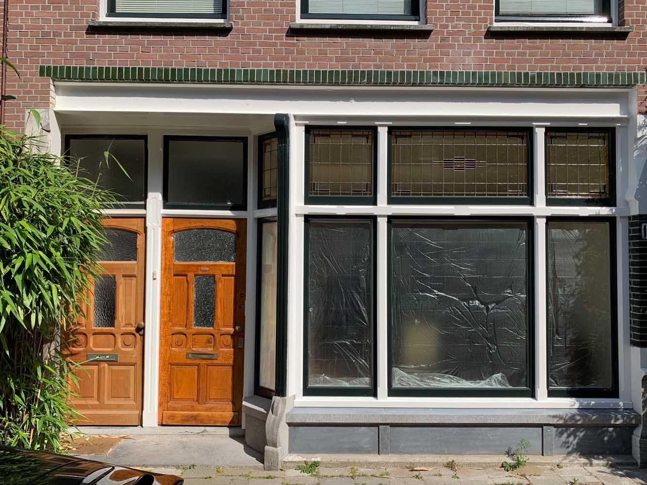 Een winkel-woonhuis uit de 19e eeuw werd in de jaren ’90 door ons aangepast ten behoeve van volledige bewoning. Voor de nieuwe pui werd gekeken naar de naastliggende panden uit dezelfde architectonische eenheid. De verschillende werkplaatsen, winkels en koetshuizen op de begane grond zijn meerdere malen aangepast. Voor het her-ontwerp werd aangesloten bij de resterende puien met facetkanten en kapelletjes.