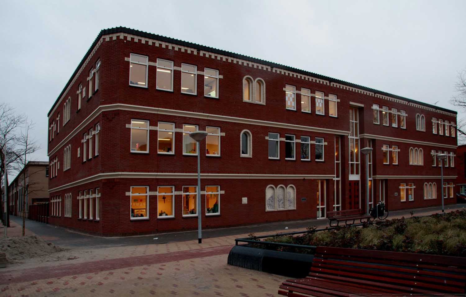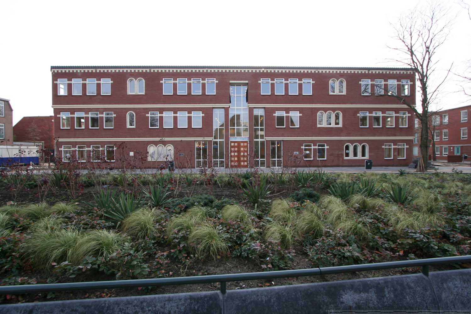 De Islamitische basisschool Yunus Emre groeide uit haar jas, een sympathiek schoolgebouw uit de jaren ’20. In het ontwerp is een aantal ornamenten hergebruikt en teruggeplaatst. De school weerspiegelt het vernieuwde beeld dat voor de stadsverniewing van de wijk is opgesteld. Het ontwerp neemt afstand van de woonbebouwing door de verbijzonderde stapeling in de gevel, de vensters en de schitterende tegeltableaus.