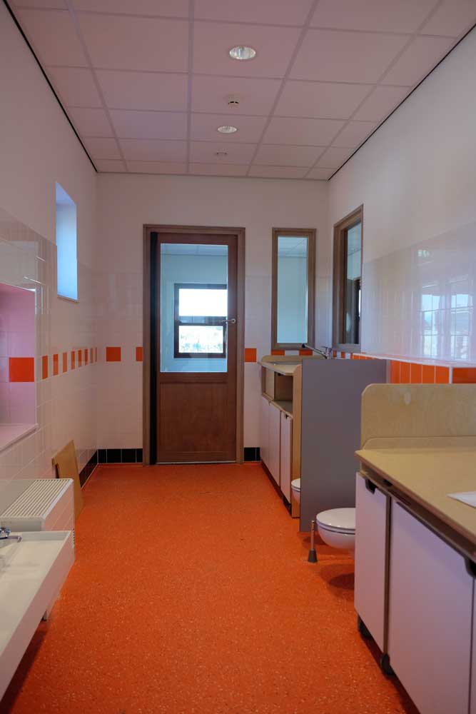 Het karakter van het kindercentrum is meer open, de schaal is kleiner en het gebouw vertelt met de patio’s en gevelindeling meer dan het bestaande schoolgebouw.