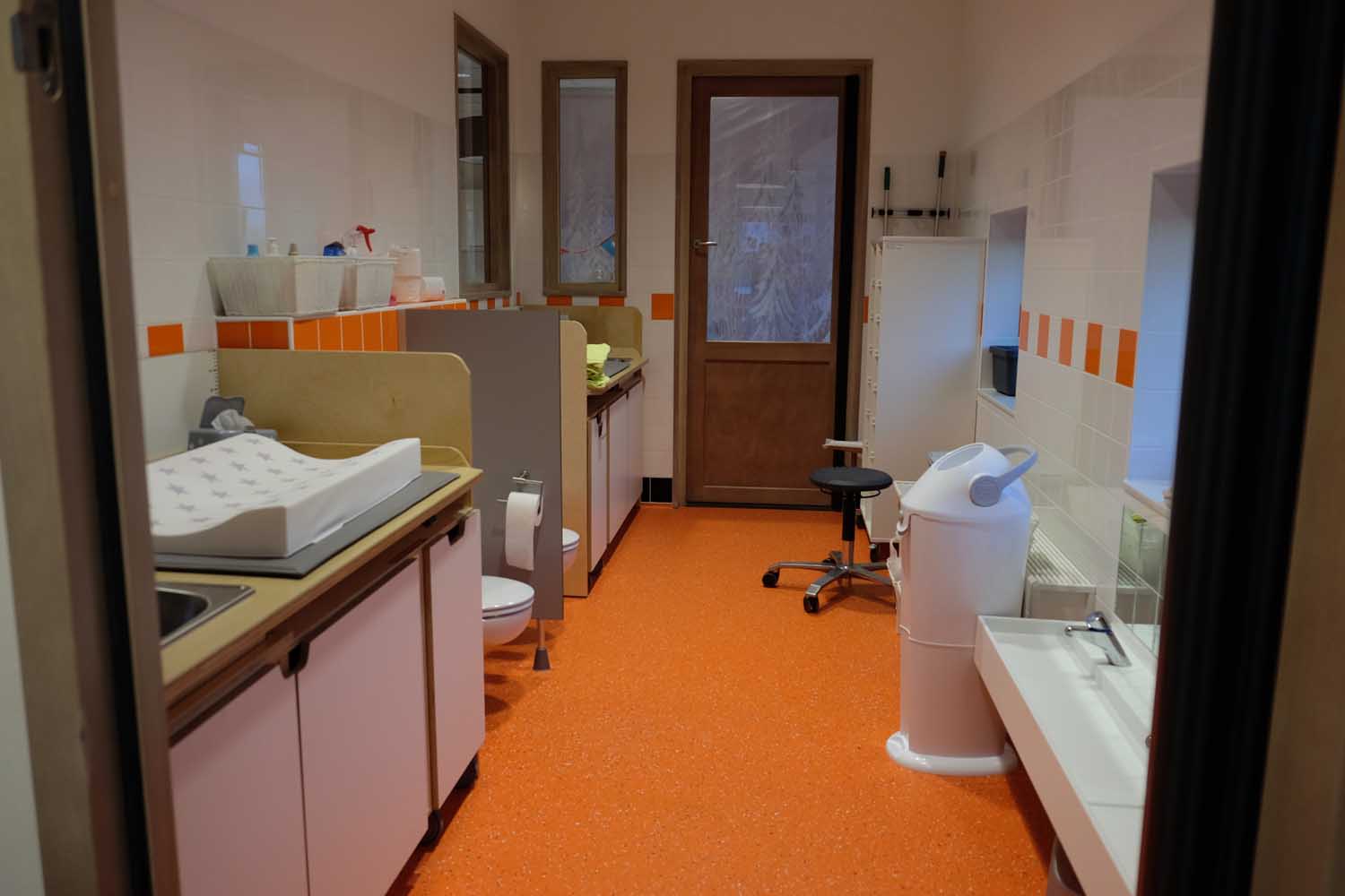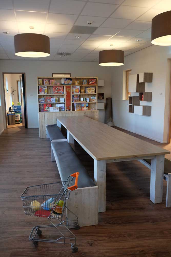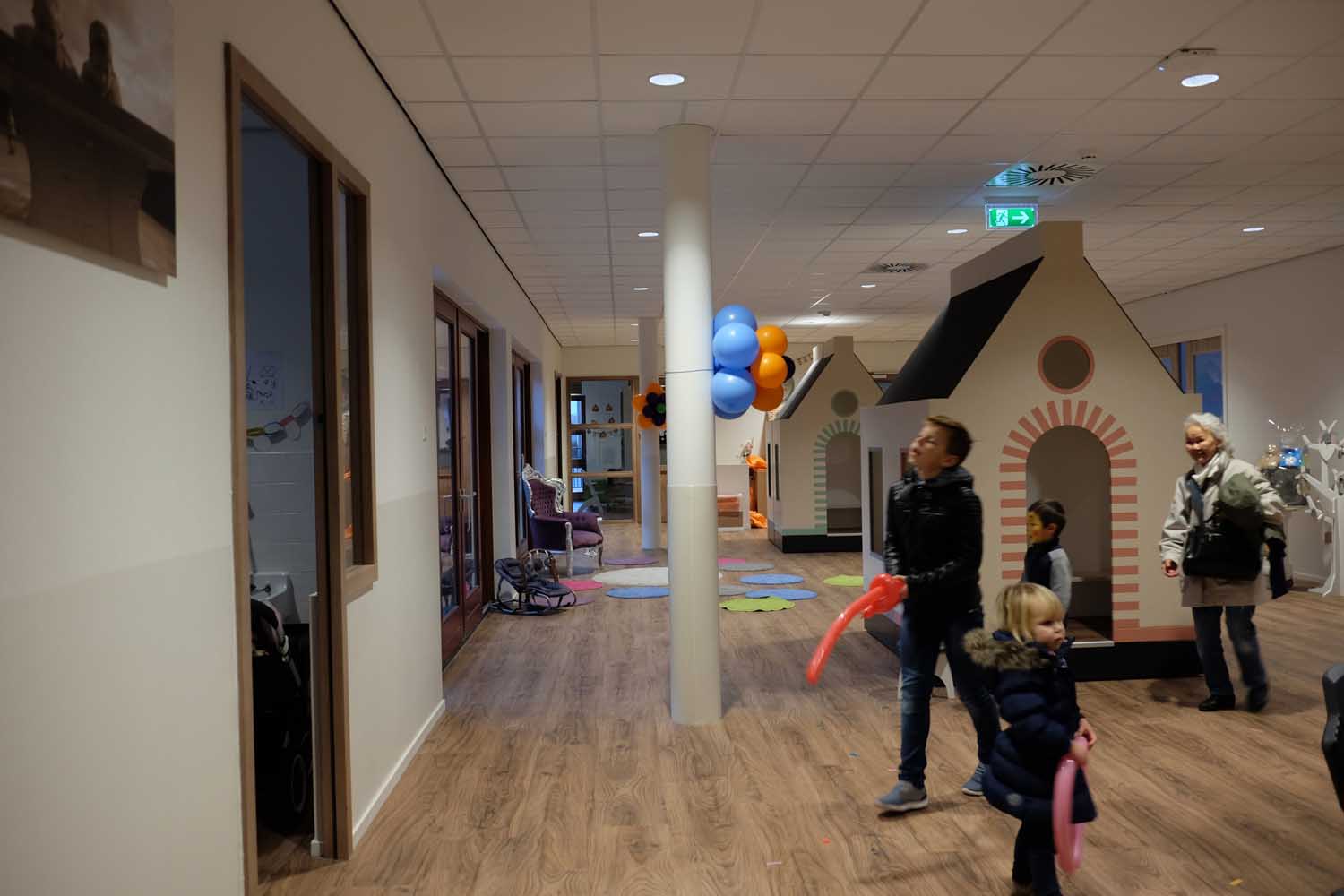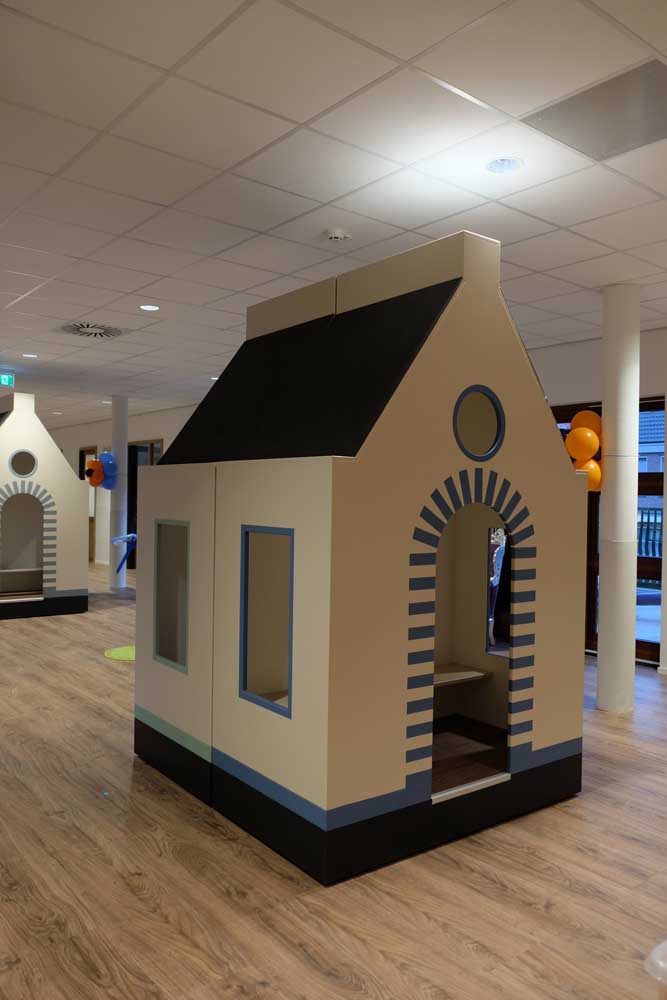 In het gebouw zijn 7 groepen gehuisvest. Op de begane grond bevindt zich een grote speelhal, waaraan de  groepsruimtes voor de kleinste kinderen liggen. De hal kan in kleinere eenheden worden opgedeeld door verplaatsbare speelhuizen. Op de verdieping bevinden zich de ruimtes voor de grotere kinderen. Daar is ook een grote keuken die tevens door de basisschoolleeringen zal worden gebruikt. Het atelier en de buitenspeelplaats voor de grotere kinderen maken de eerste verdieping tot een aantrekkelijke naschoolse-opvang.