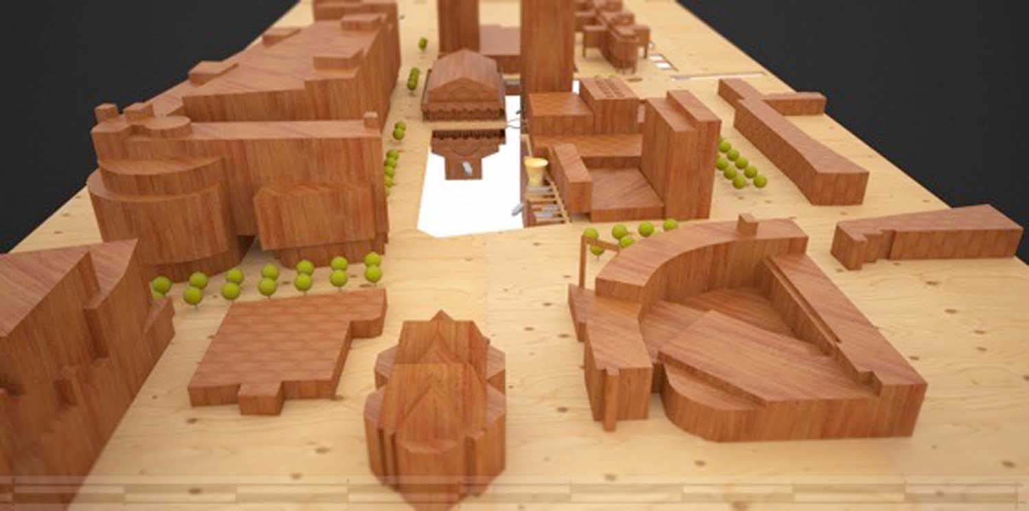 De grootte van het plein voor de haven, stadhuis en Nieuwe Kerk kent verschillende varianten: het varieert van het plein cf. de huidige grootte en een kleine haven tot een gemaximeerde havengrootte . Met de stake holders van het bestaande plein zal de optimale grootte ervan bepaald gaan worden. Evident is dat het gebied voor de Nieuwe Kerk tot haven-oever als een openbare ruimte dient te worden opgevat. De hekwerken en pilasters van de tuin van de Nieuwe Kerk blijven vanzelfsprekend gehandhaafd maar het gebied zal meer als geheel worden ingericht en gebruikt. Een sterk stelsel van openbare ruimte met gaanderijen en collonades gevoegd bij de verschillende trappen naar het water maakt het verblijfsgebied aantrekelijk. Zelfs de tot nu toe zieltogende trappen van Hotel Central krijgen een welhaast automatische funktie als wacht ruimte voor de rondvaart boten.