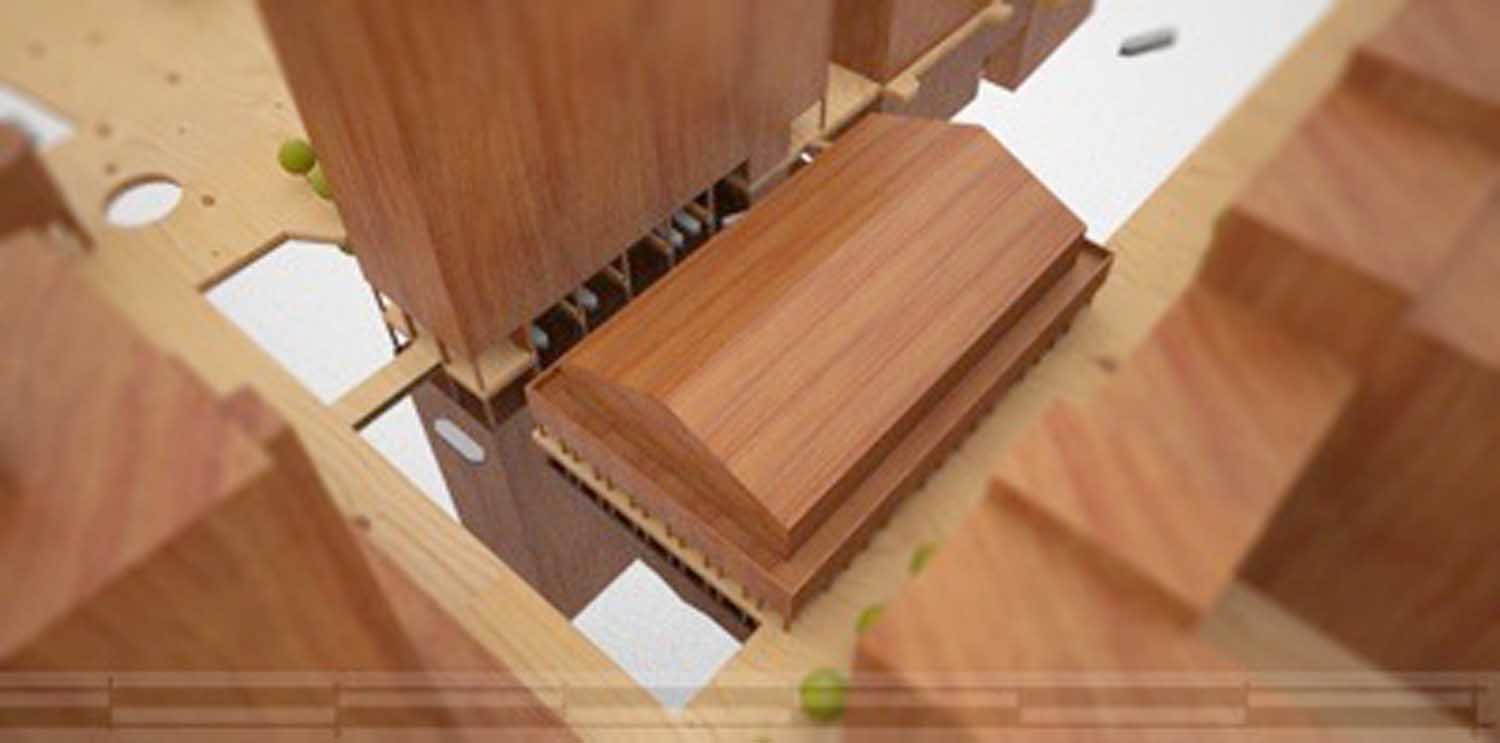 De in hun huidig gebruik zieltogende trappen krijgen met hun nieuwe waterbegrenzing een meer vanzelfsprekend funktie: het is eenvoudig geworden om de trappen afsluitbaar te maken bij de doorgang bij Shirasagi en met een waterpodium een echt buitenlucht amfitheater funktie te geven. In de begane grond laag van het Shirasagi paviljoen kan het ticket office van de rondvaartboten en buiten podium worden ondergebracht.