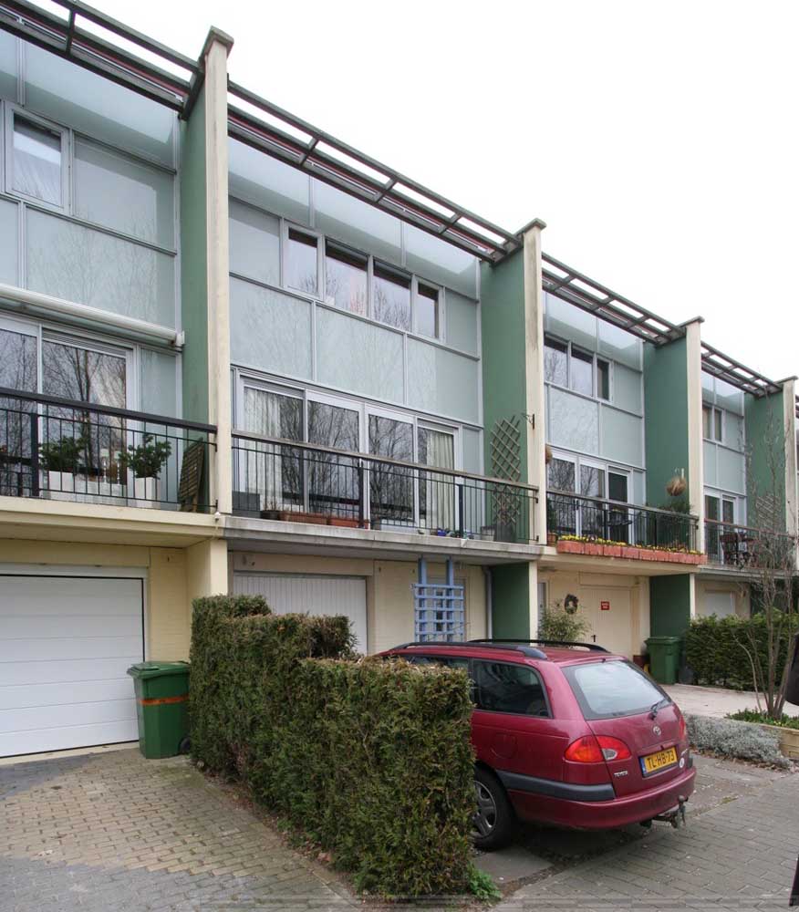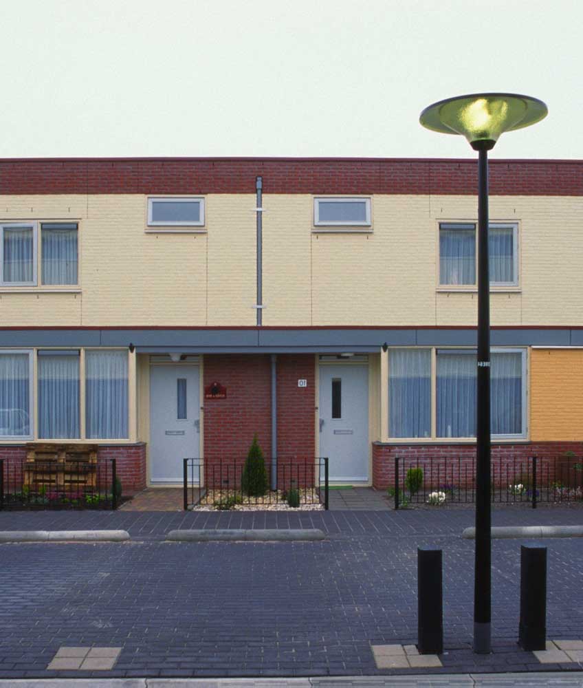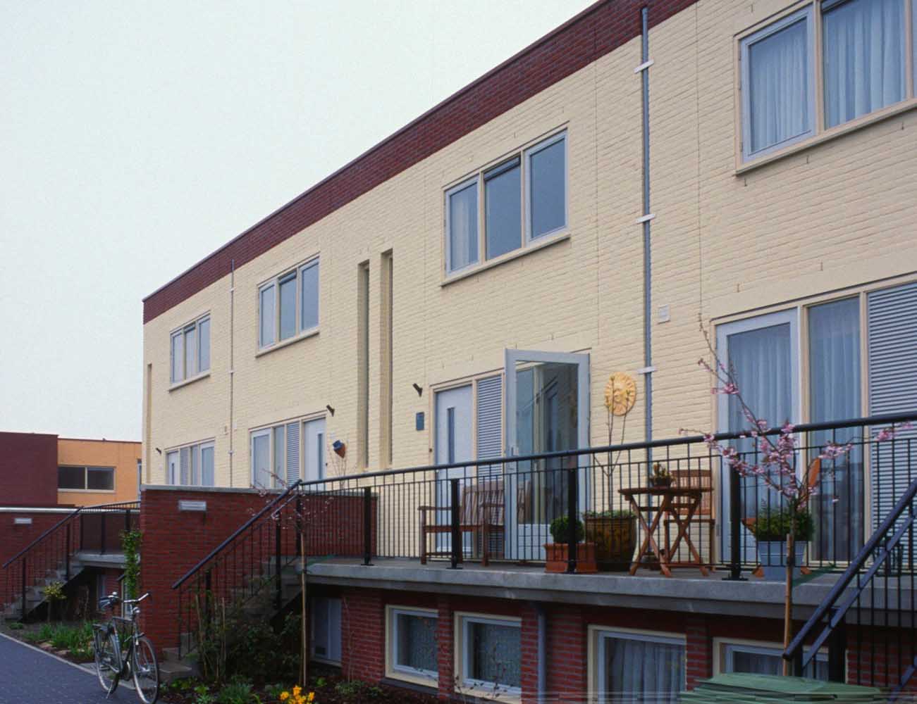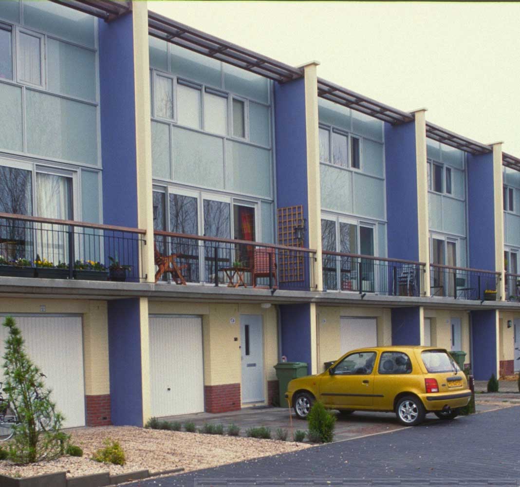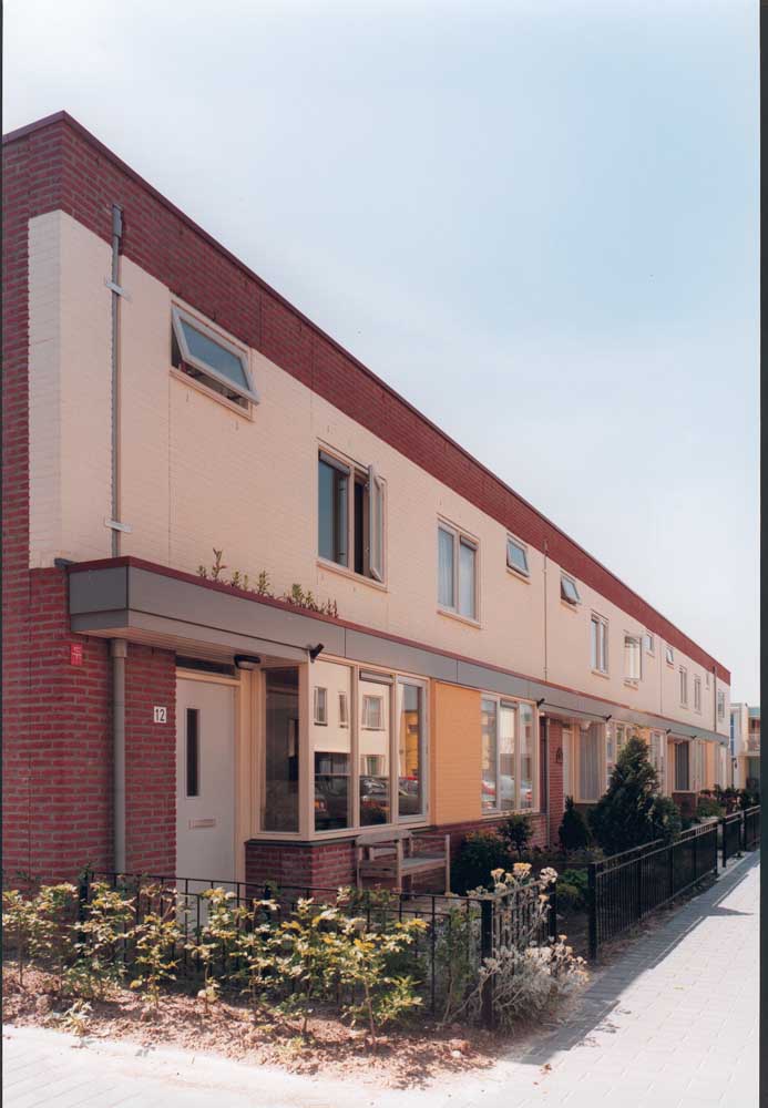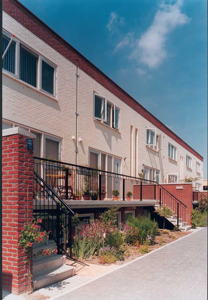 In het blok zijn drive-in woningen ontworpen, een tweetal blokken eengezinswoningen met souterrein (door middel van prefab-kelders) en een strook woningen met een volledig woonprogramma op de begane grond.