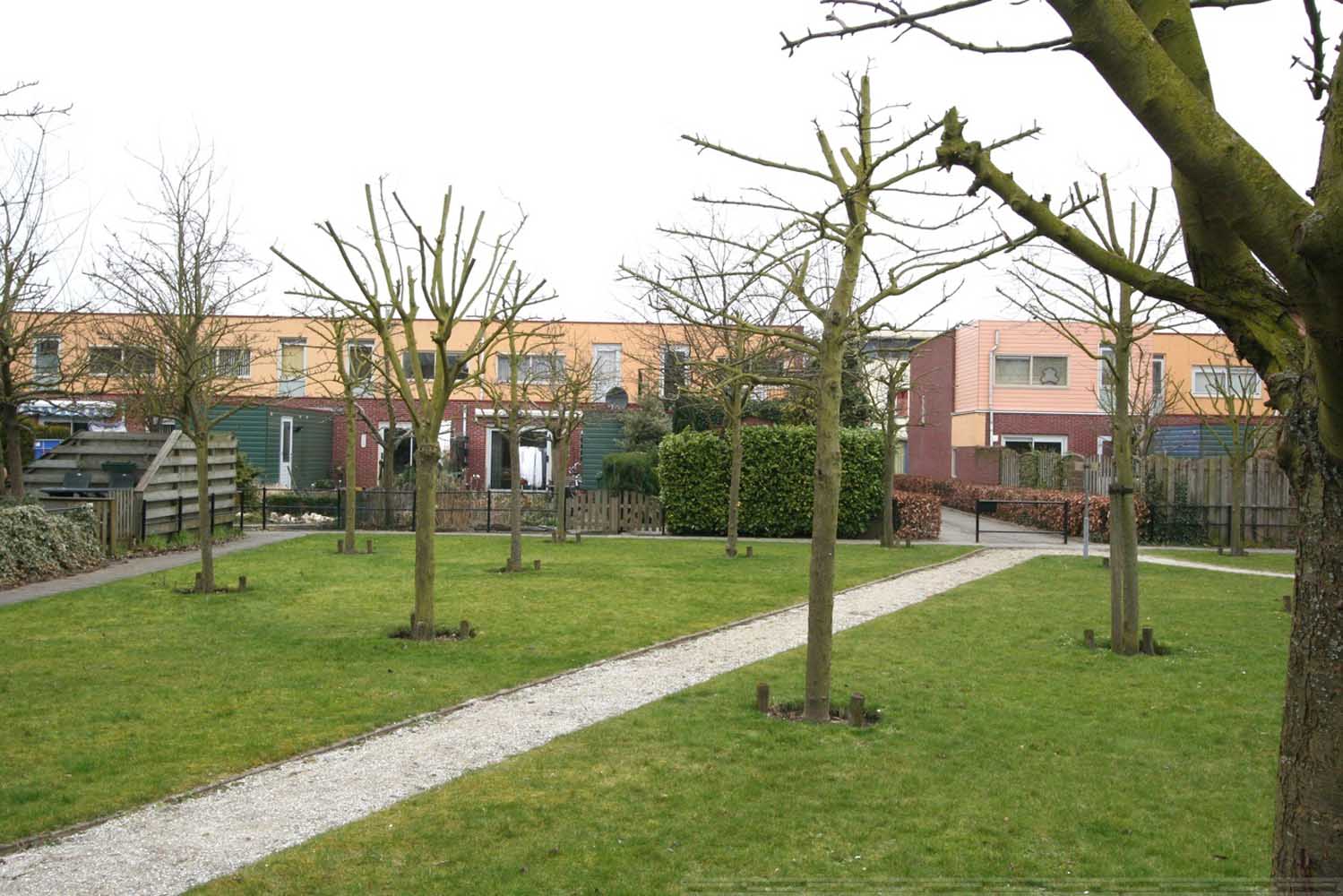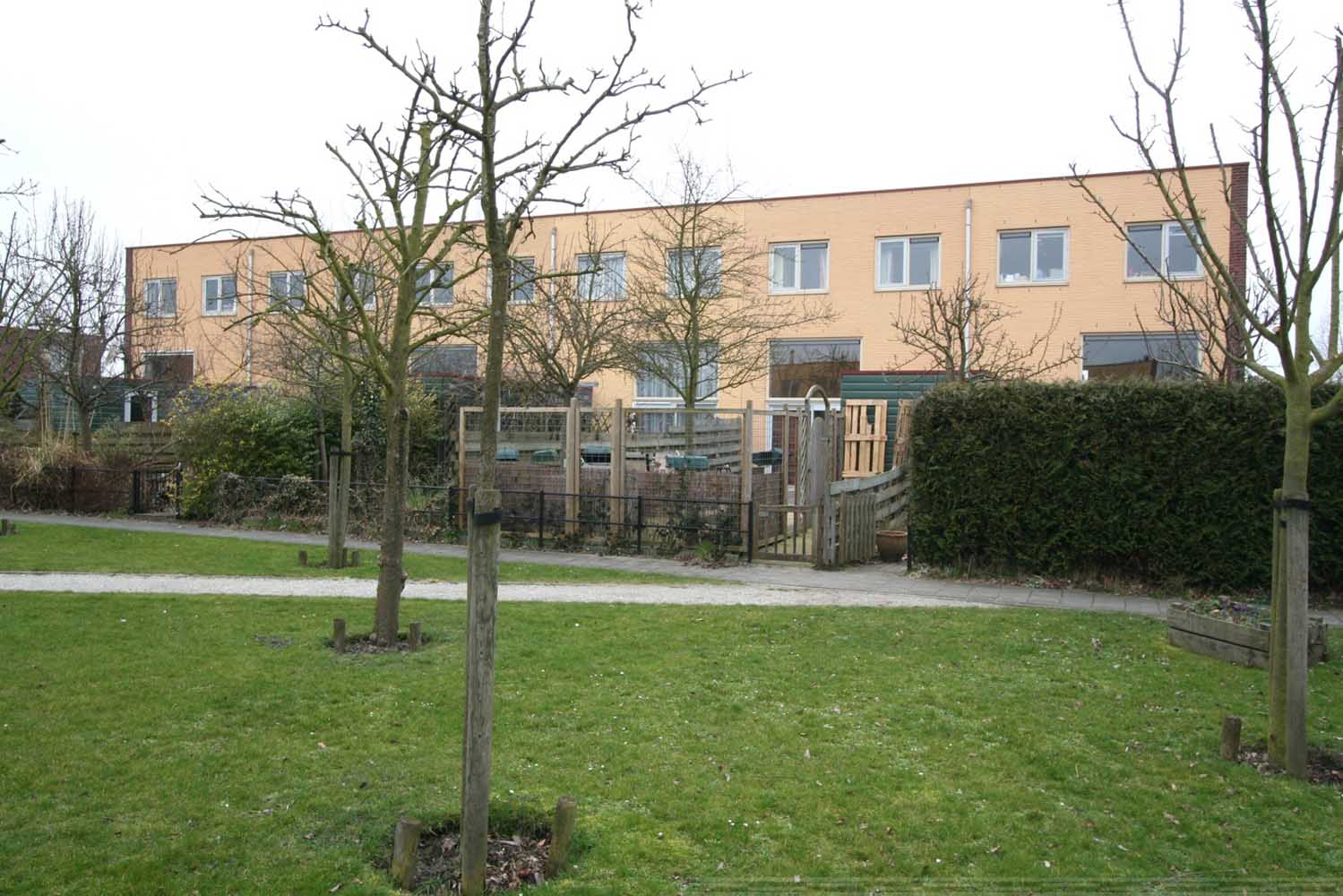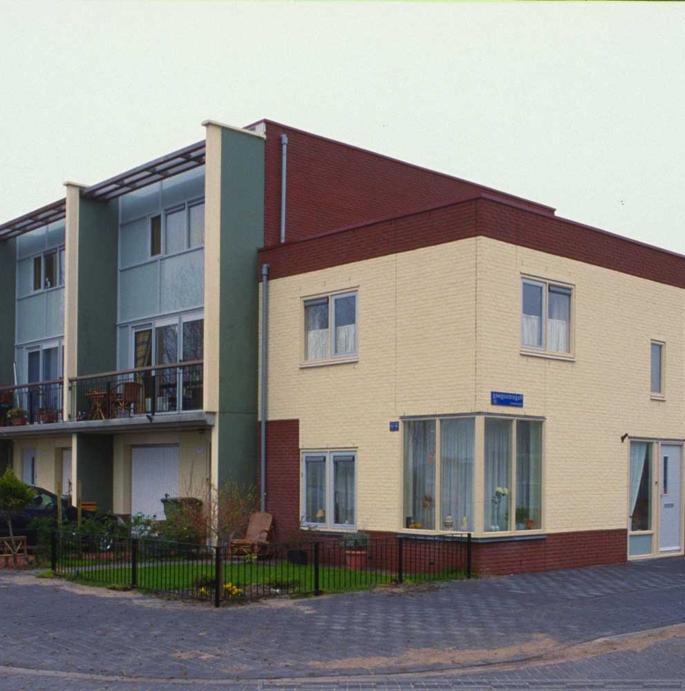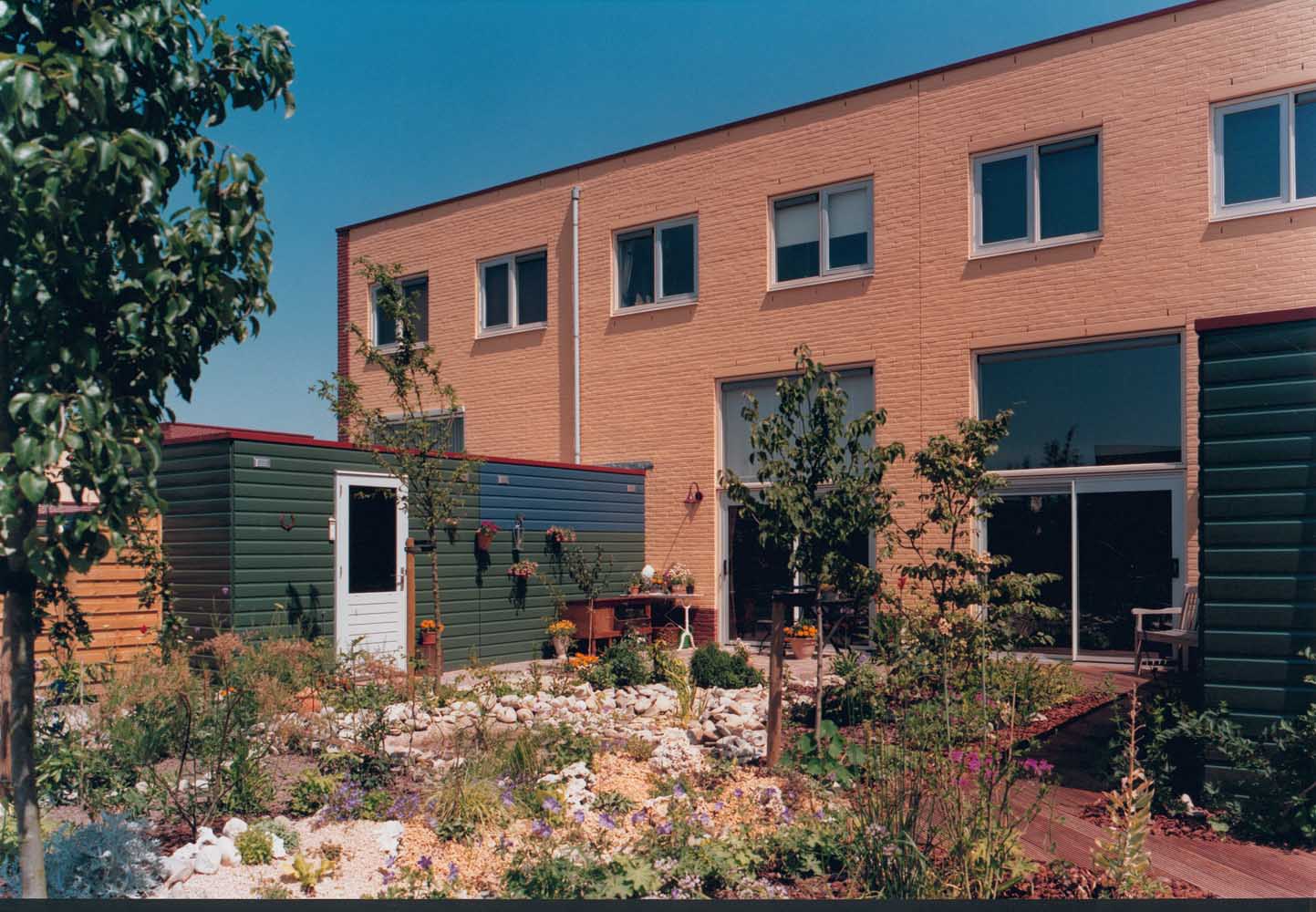 De meest zuidelijk gelegen hof –een vierkant bouwblok– met uitzicht over het park, boezemwater en de polder is door ons bureau uitgewerkt.