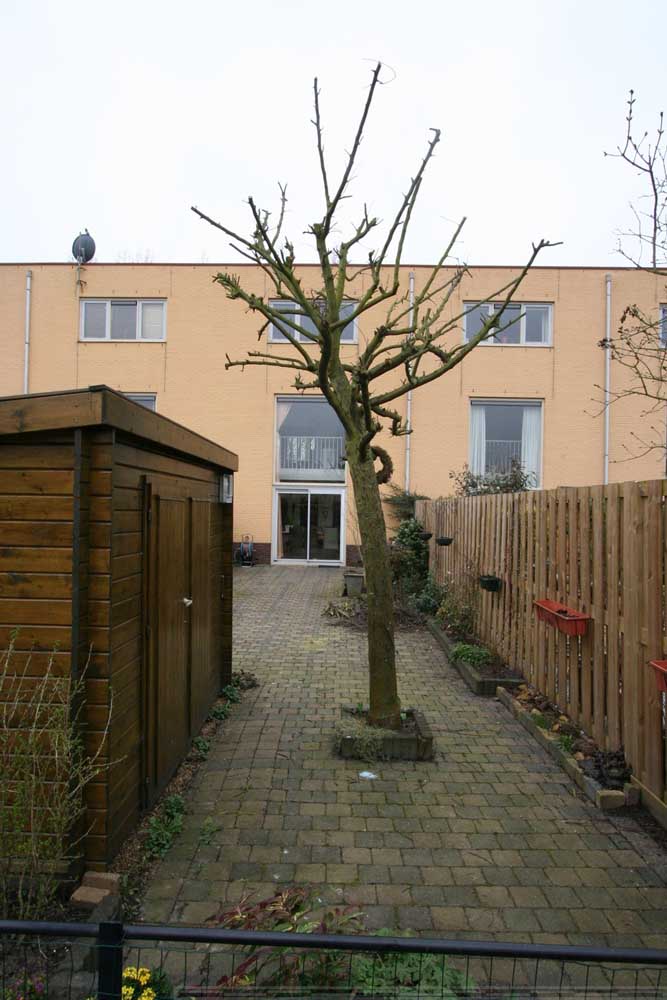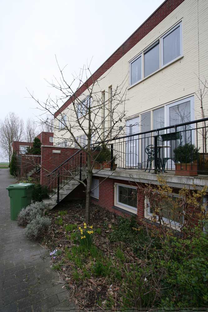 Omdat voor deze hof de ligging bijzondere kwaliteiten heeft is gekozen voor een naar buitengekeerde hof: de woningen zijn daarmee georiënteerd op park en laan aan oost- en westzijde, op straat en poldervista aan de respectievelijke noord- en zuidzijde. De karakteristiek van de hof is vormgegeven als woningen waarvan het erf overloopt in een grote boomgaard. De woningen zijn op basis van deze verscheidenheid gedifferentiëerd: woningen met sousterrain, bel-etage en balkon aan oost- en westzijde en woningen met erkers aan de noordzijde. Aan de zuidzijde, profiterend van het uitzicht zijn ‘verrekijker’woningen van het drive-in type voorgesteld. De woningen hebben aan de achterzijde door hoge vensters een bijzonder uitzicht op tuin en boomgaard. De bergingen zijn in alle gevallen tegen de woningen aangebouwd als terrasscheiding; door de aanplant van de boomgaard gaan de diepe tuinen en gemeenschappelijk groen binnenterrein meer geleidelijk in elkaar over als één ruimte onder de bomen.
