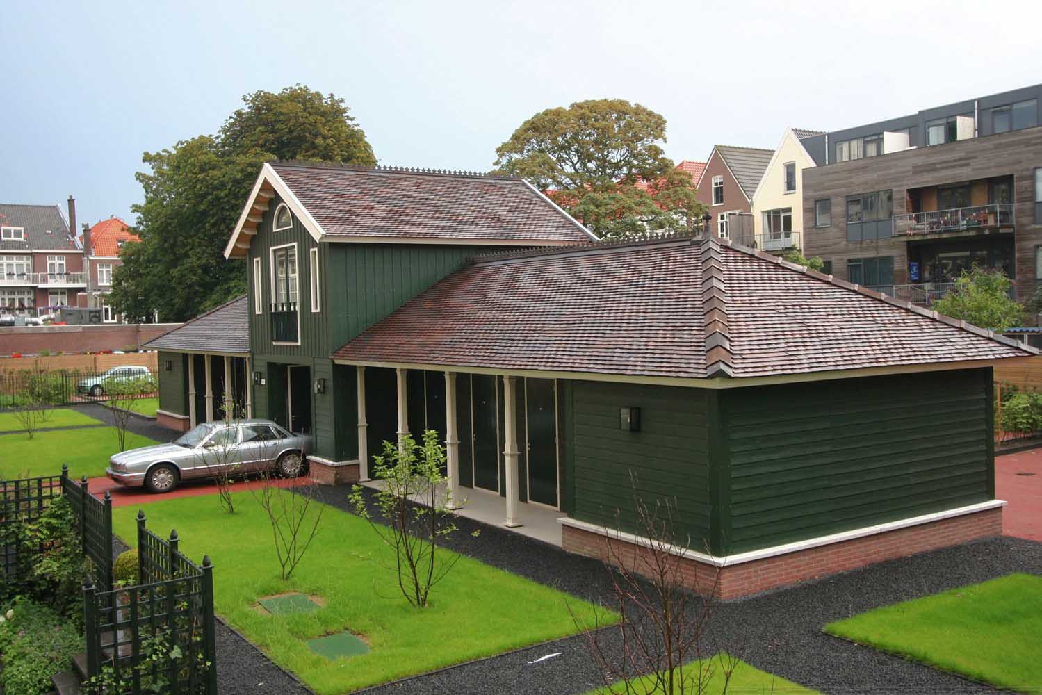 Het ontwerp is gekozen na een wedstrijd. De voorgestelde nieuwbouw op het binnenterrein is vormgegeven als tuinhuizen.