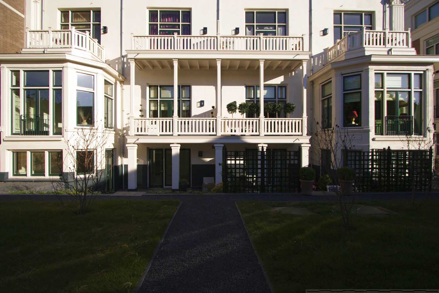 De huizen zijn door een smal hek zichtbaar vanaf de drukke Laan van Meerdervoort en wekken de indruk de bijgebouwen van de kapitale herenhuizen te zijn. Het nieuwe appartementen, gebouw MMV –aanvankelijk ‘MM’ naar het stichtingsjaar 2000 vernoemd– sluit in architectuur aan bij de eclectische trant van de naastgelegen panden. Daarmee wordt een verdere versnippering van dit deel van de Laan van Meerdervoort voorkomen.