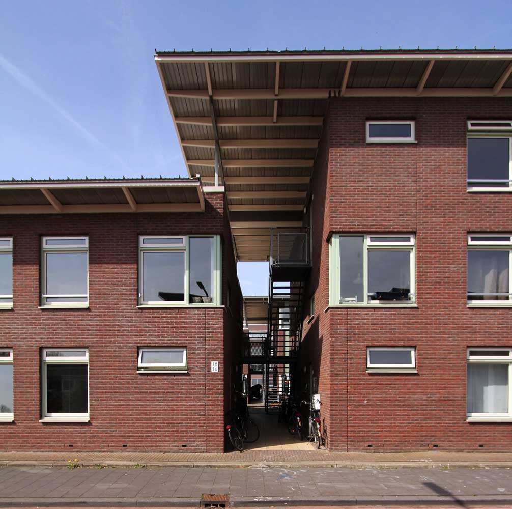 De studentenwoningen zijn opgevat als appartmenten bestaande uit 4 individuele kamers, gemeenschappelijke keuken en sanitair. De appartementen worden aan de koppen ontsloten.