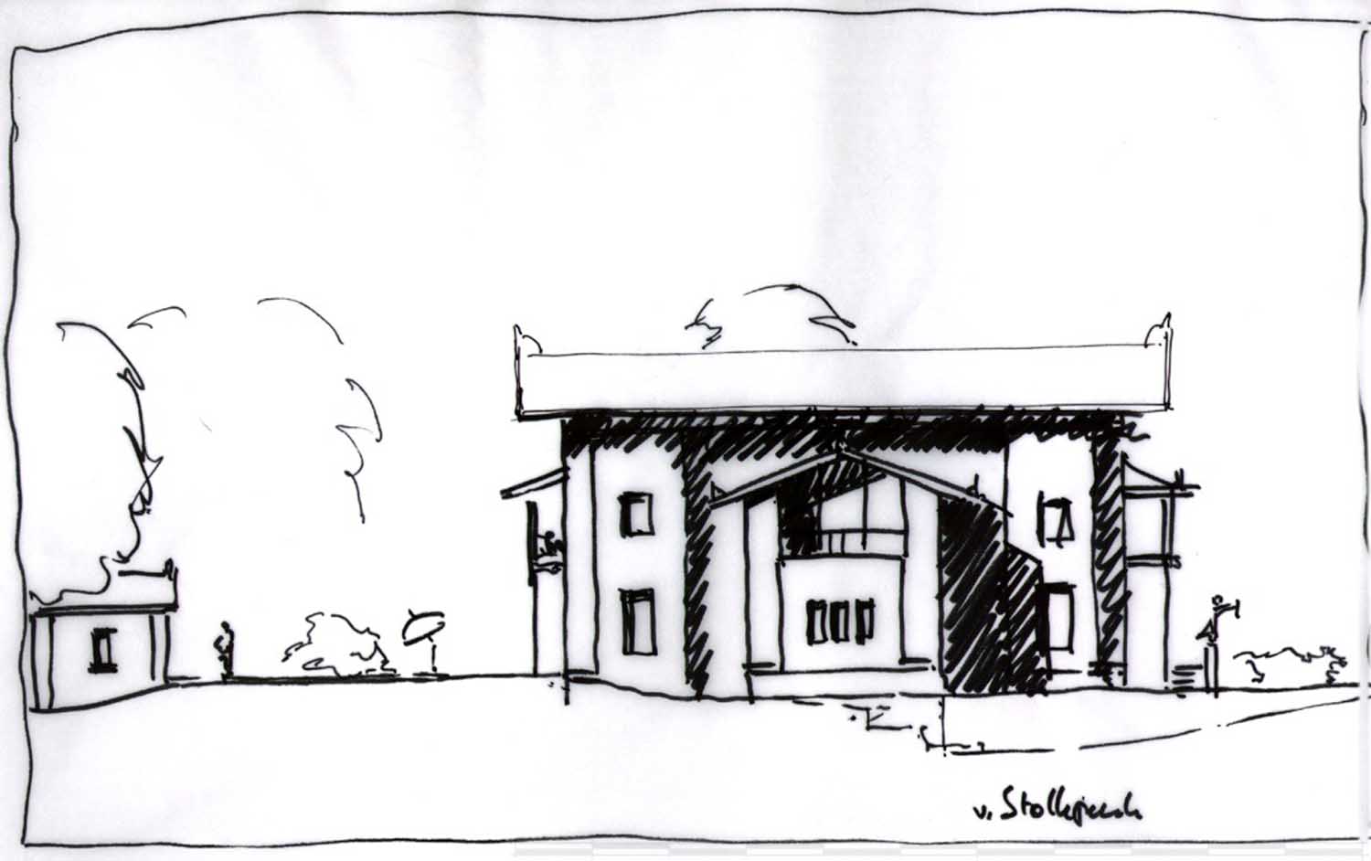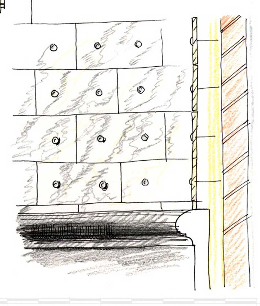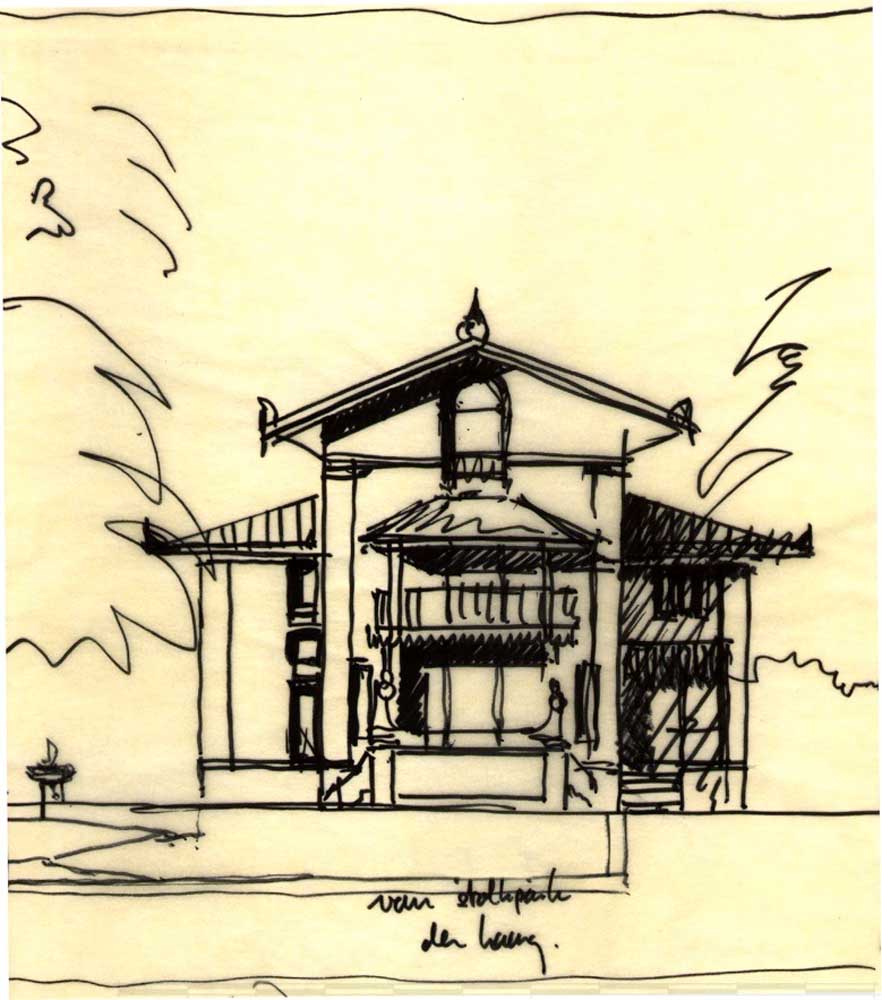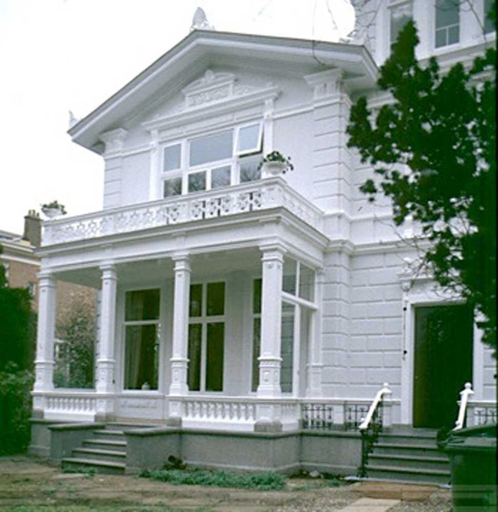 Voor de uitwerking van het huis kan gedacht worden aan een mate van verfijnd detail als de eclectische villaas aan de van Stolkweg laten zien. De kleur van de villa is wit op een grijze plint. De gevels zijn gepleisterd en geschilderd of bekleed met marmeren plaatjes die met matglanzende aluminium noppen zijn bevestigd op de achterconstructie, zoals het postkantoor van Wagner in Wenen. De plint is bekleed met gebouchardeerde hardstenen platen. Het lijst- en profielwerk is van hout. De overstekende kap is van wit geschilderd hout en bekleed met zink.