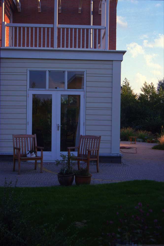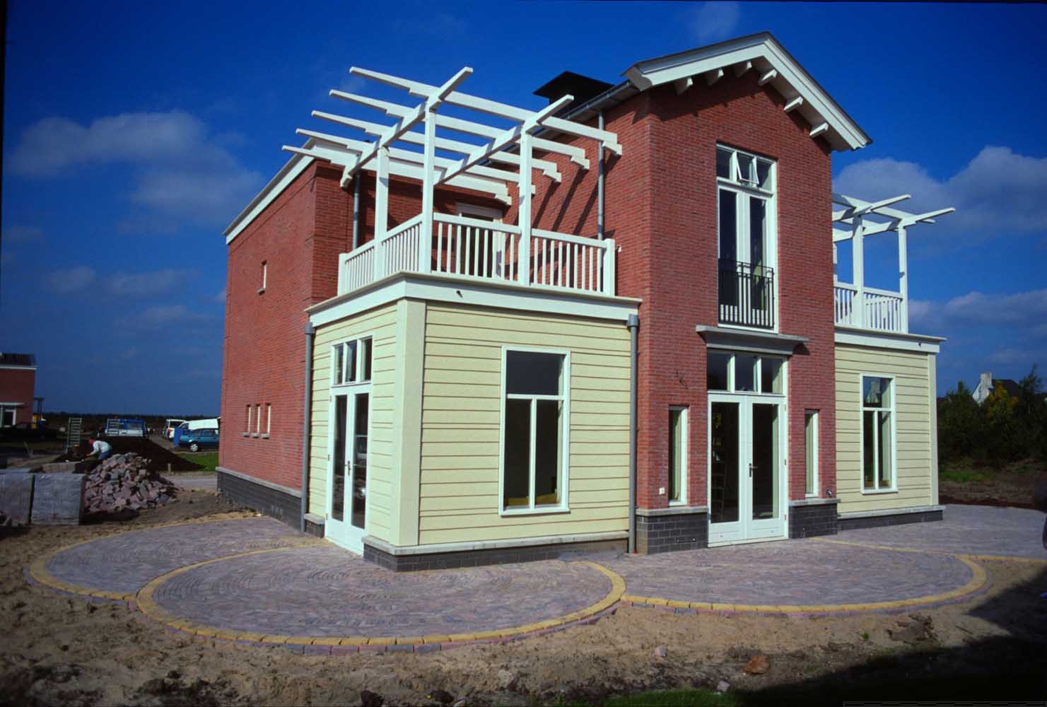 Almeerderhout is daarmee een wel heel bijzonder stuk nieuw-land in Nederland. Het werk van de Amerikaanse architect en president Thomas Jefferson –oa ontwerper van de universiteit van Richmond, Virginia– inspireerde dit ontwerp voor een twaalftal villa’s die ter weerszijden van één van die crescents worden gebouwd. In principe zijn de woningen identiek: slechts de oriëntatie op uitzicht en bezonning heeft tot verschillen in gevelindeling geleid. De villa’s hebben elk een symmetrische hoofdopzet rond een hoge hal; de voorgevel is formeel uitgewerkt met een luifel, de achtergevel is informeel uitgewerkt, zich openend naar de tuin. De woningen worden uitgevoerd in lichtrood metselwerk met wit voegwerk. De woningen zijn in het eerste kwartaal van 1998 opgeleverd.