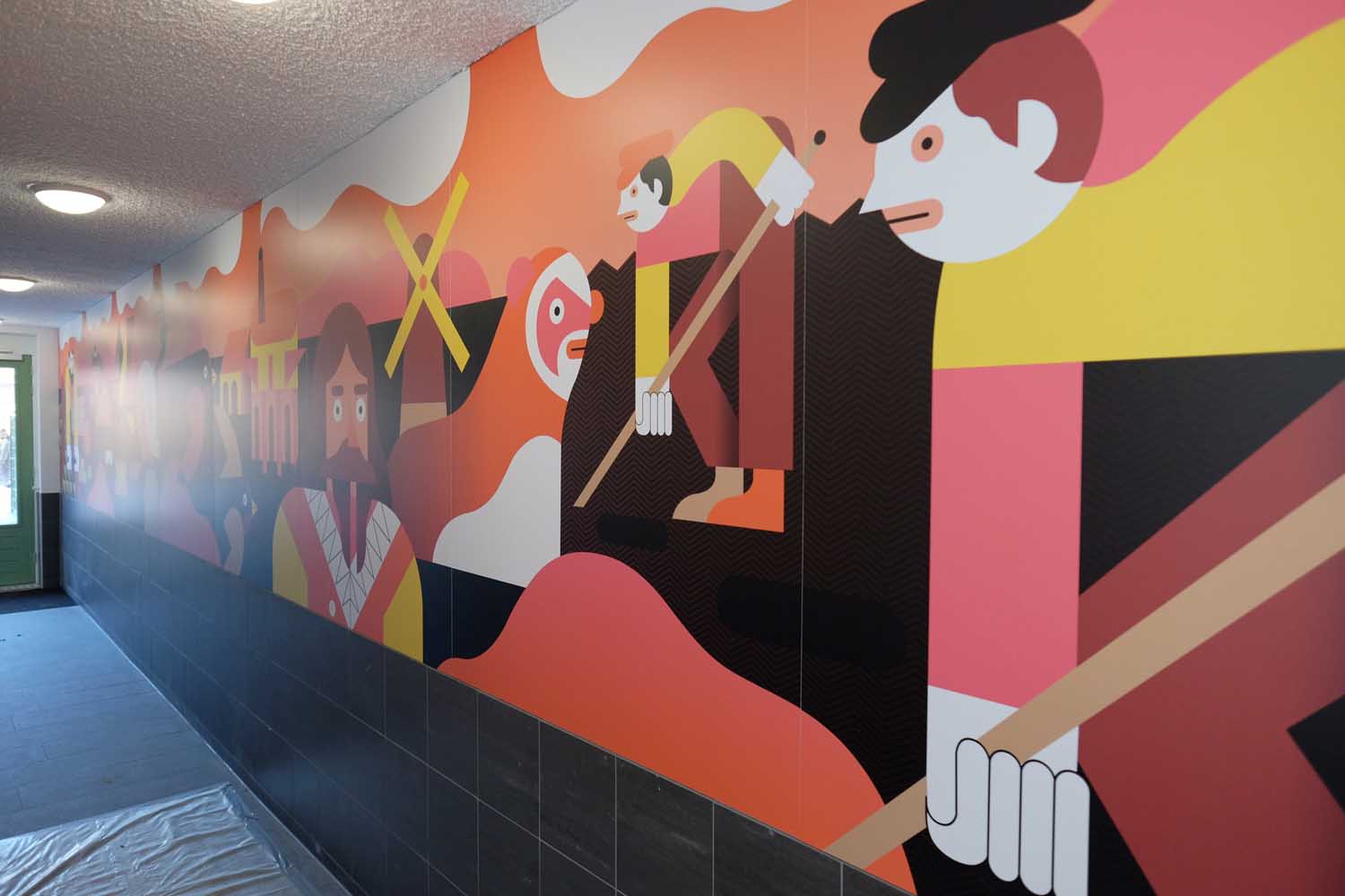 De kern van het dorp Nieuw Vennep is vernieuwd en deels verstedelijkt. De Nieuwe Kom vormt de overgang tussen het ‘stedelijke deel’ en de dorpse straten. Kunstenaar Levi Jacobs maakte wandschilderingen in de porttieken van de appartementen, maakte de stoeppalen en de koppen op de consoles van de balkons. Beroepen en dieren van de Haarlemmermeer worden uitgebeeld.