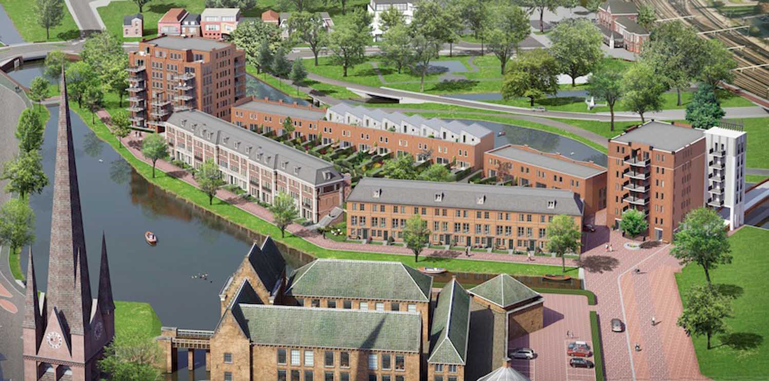 Op voorstel van SCALA werd het plan omgegooid: kades en zachte groene oevers rondom.Llieflijke woningen van SCALA aan de zijde van de binnenstad en het Kasteel Woerden. Woningen met een utilitair karakter van Groosmans Gert de Graaf deels aan de zuidrand tegenover het station. Inmiddels zijn van SCALA de blokken Ravelijn tegenover de Oostdam en Bastion tegenover het Kasteel opgeleverd.
