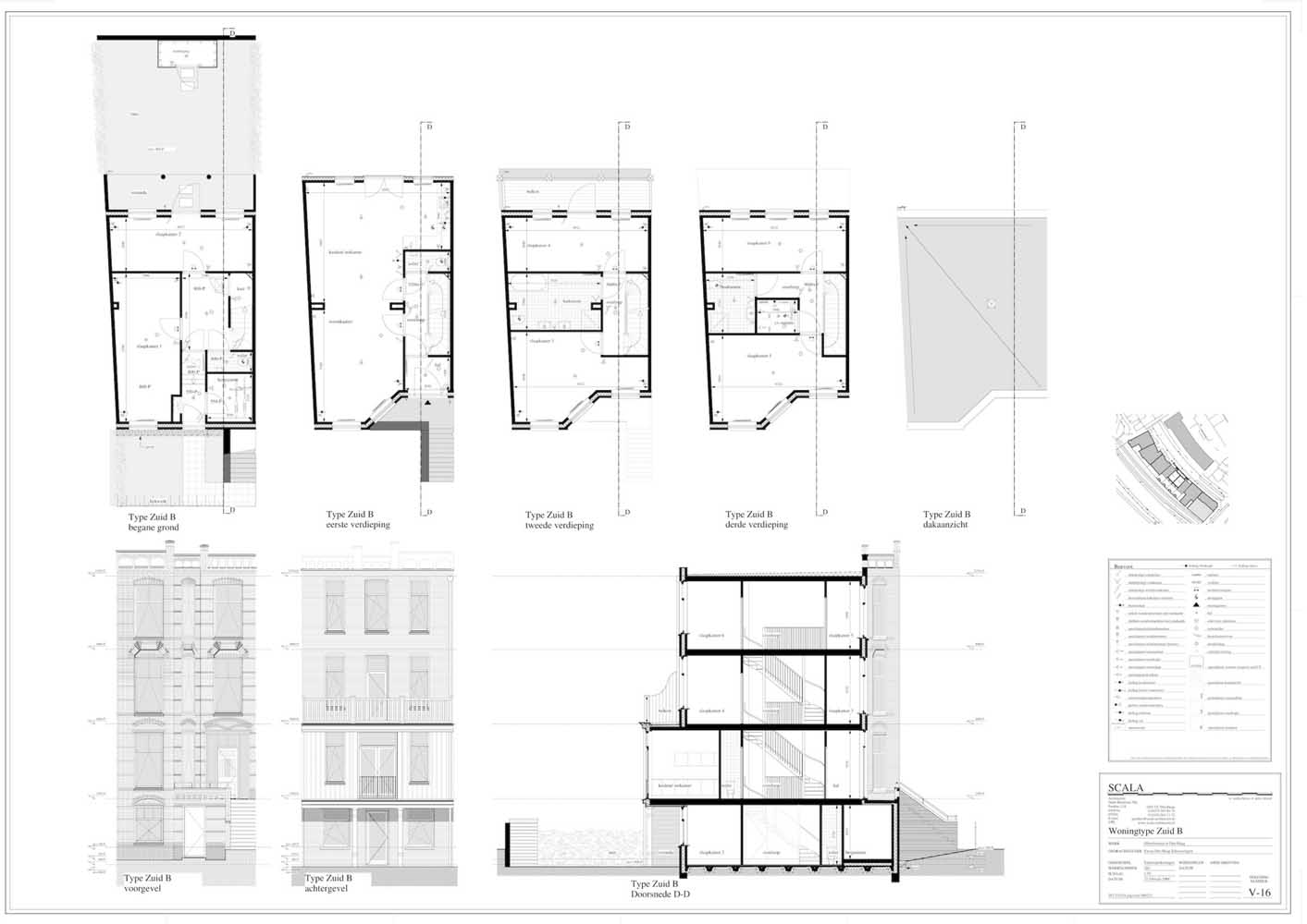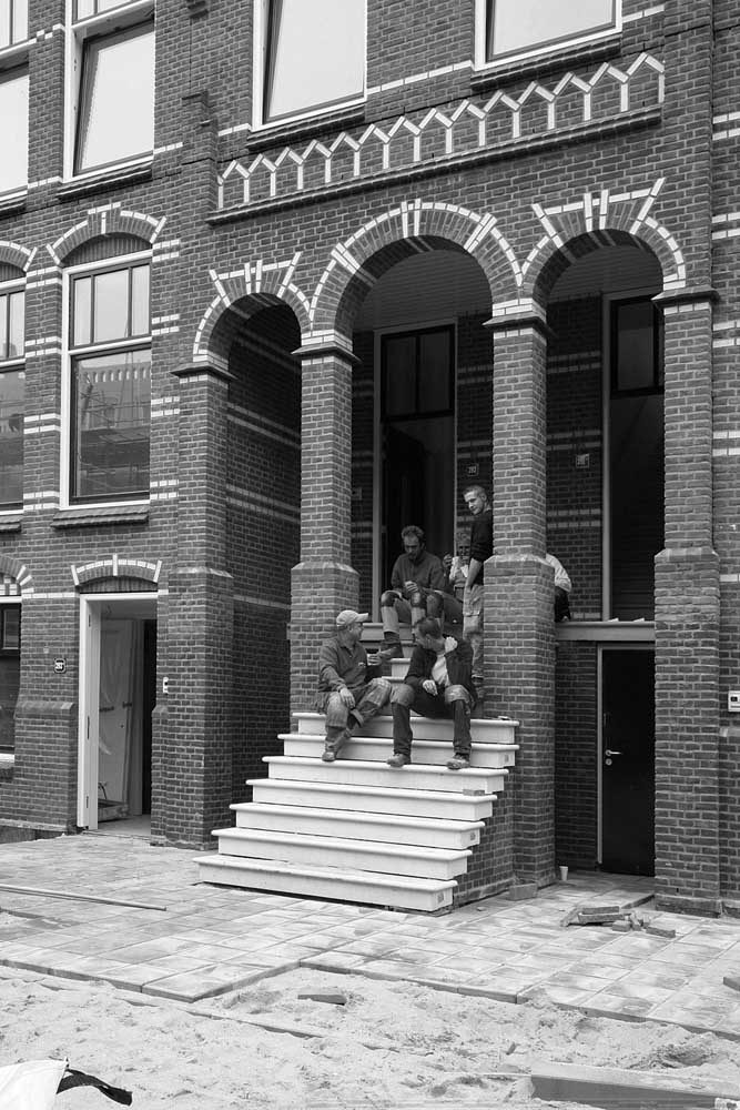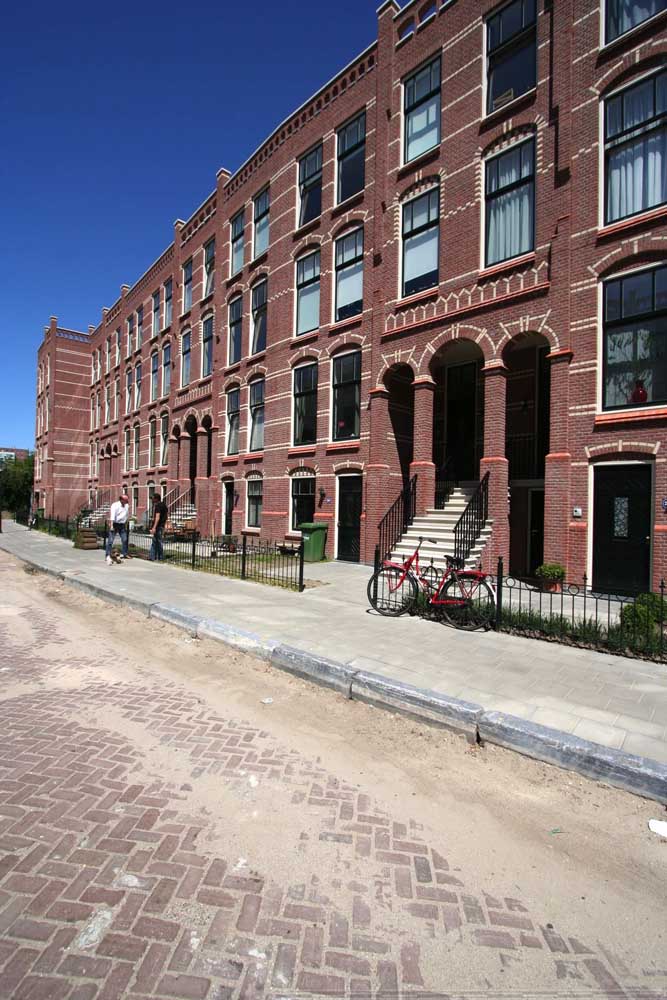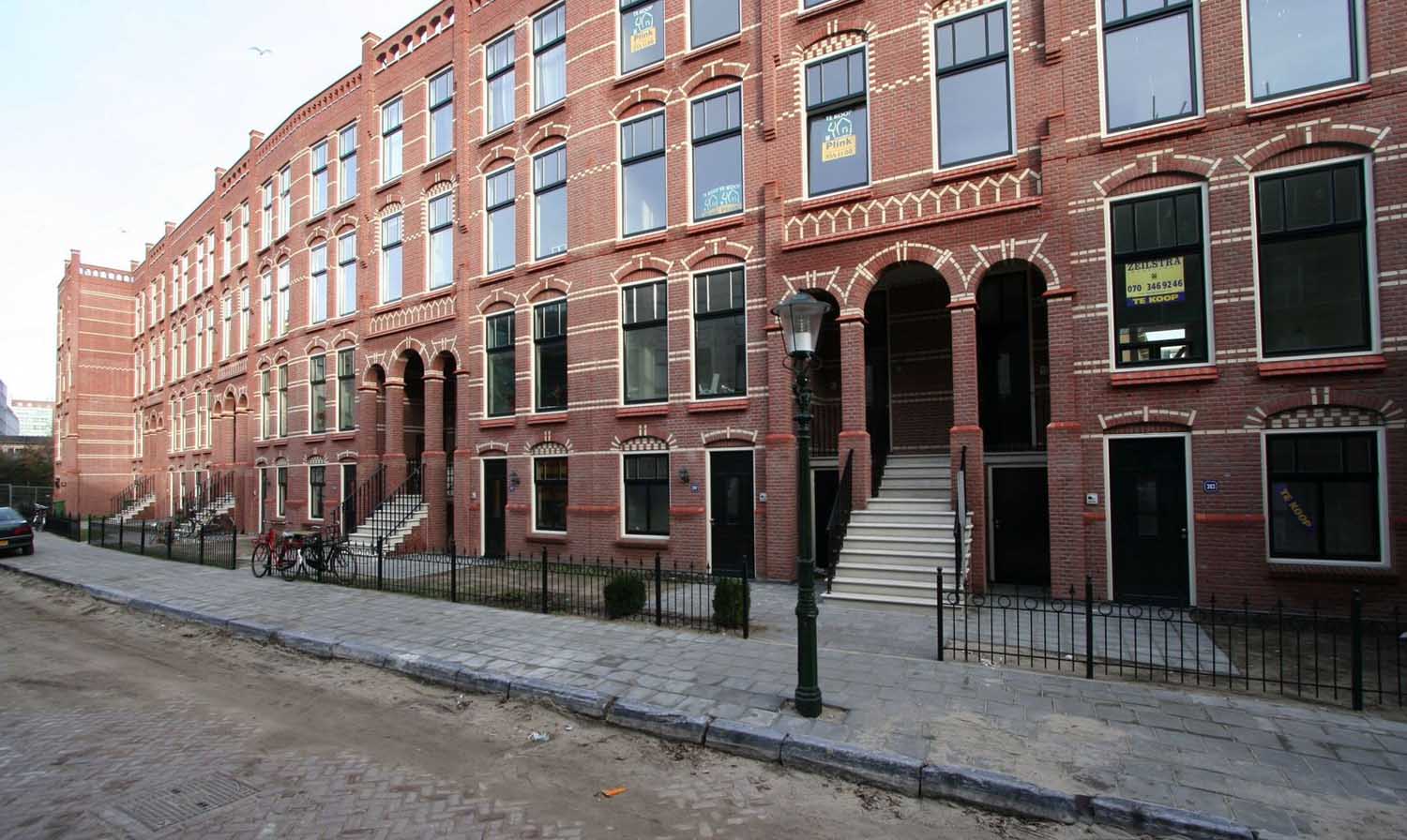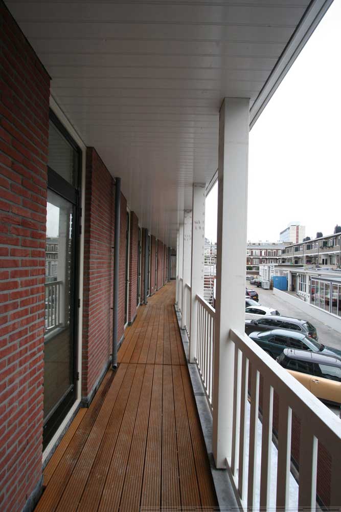 De in rode baksteen gemetselde straatwand bestaat uit beneden- en bovenwoningen zoals oorspronkelijk aanwezig. de toegang naar de bovenwoningen gaat middels een open haags portiek zoals dat in 19e eeuws den haag heel veel voorkomt. de plattegrond volgt die typologie: de begane grond woningen met een binnentrap van begane grond naar 1e verdieping worden ontsloten in de voortuinen.