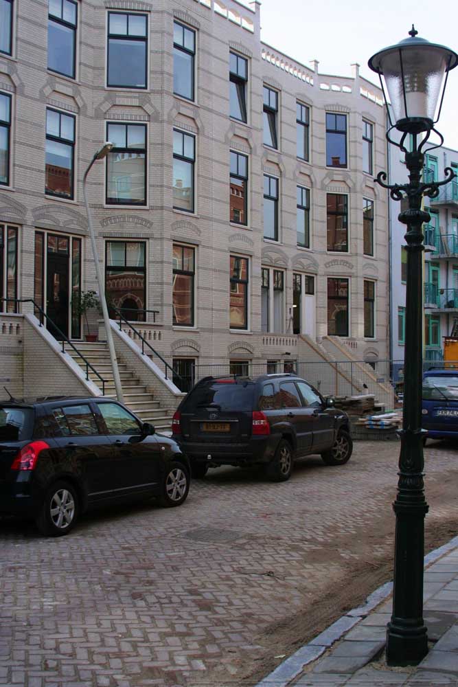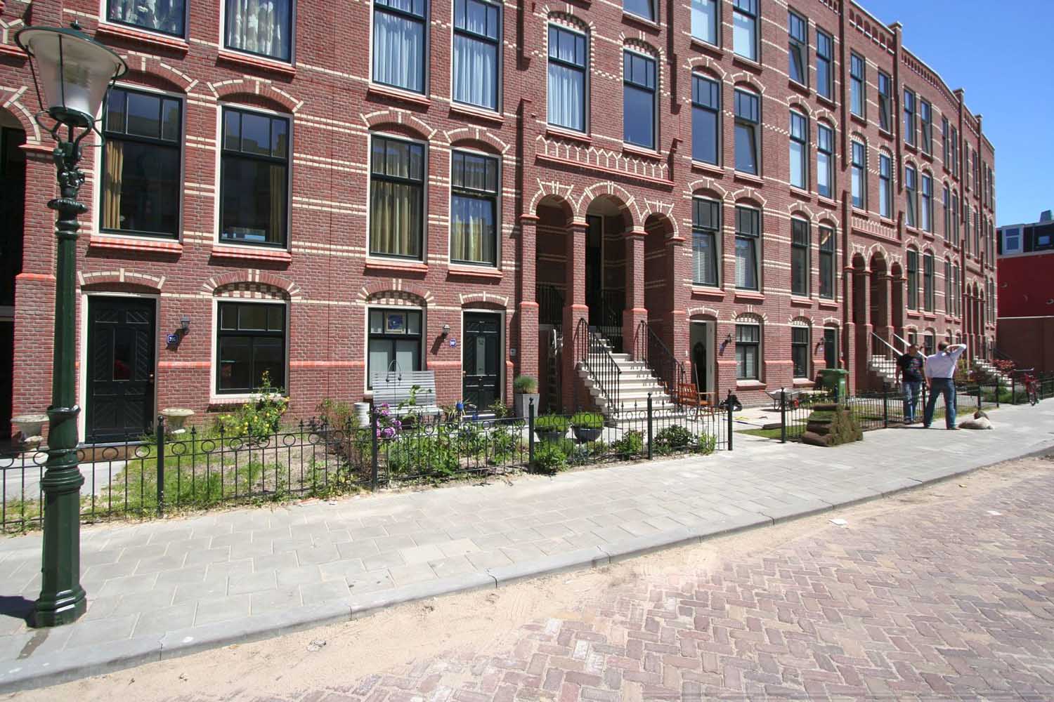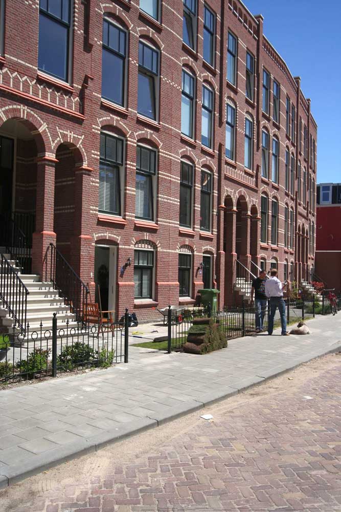 Natuurlijk. Maar in dit geval was de uitdaging een straat terug te bouwen die er door oorlogsschade teloor was gegaan. En daarbij stond voorop dat we de bestaande bijzondere woningen met trappen en voortuinen wilden terugbrengen.