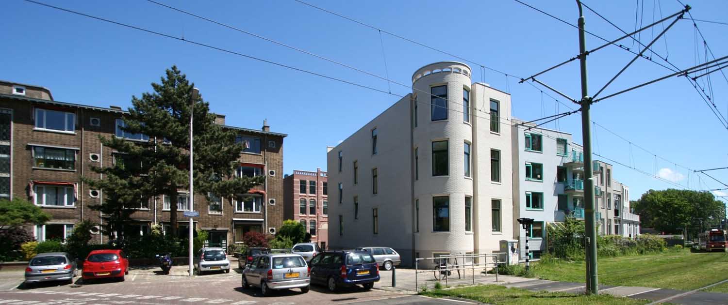 Waar het 4e deel van de haagse Obrechtstraat doodloopt tegen de wederopbouwappartementen van Dudok en Jan Wils is door Ceres/Vestia en Scala een niet mis te verstane keuze gemaakt de vooroorlogse toestand op deze plek in herinnering te brengen. Daarmee markeert de nieuwbouw de slooplijn van de ‘Atlantikwall’ die de bezetter in 1940 hier oprichtte.
