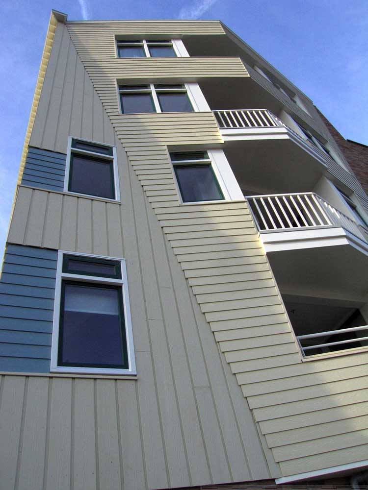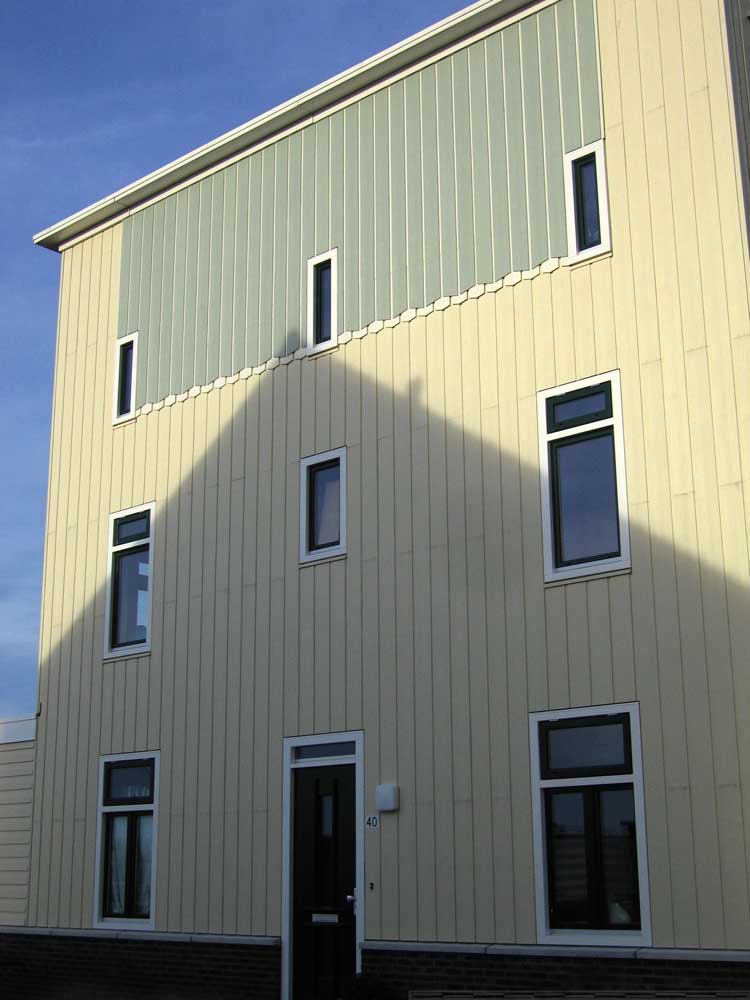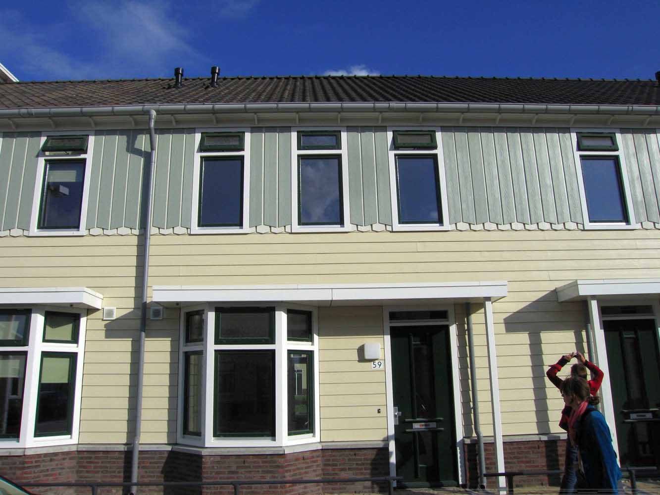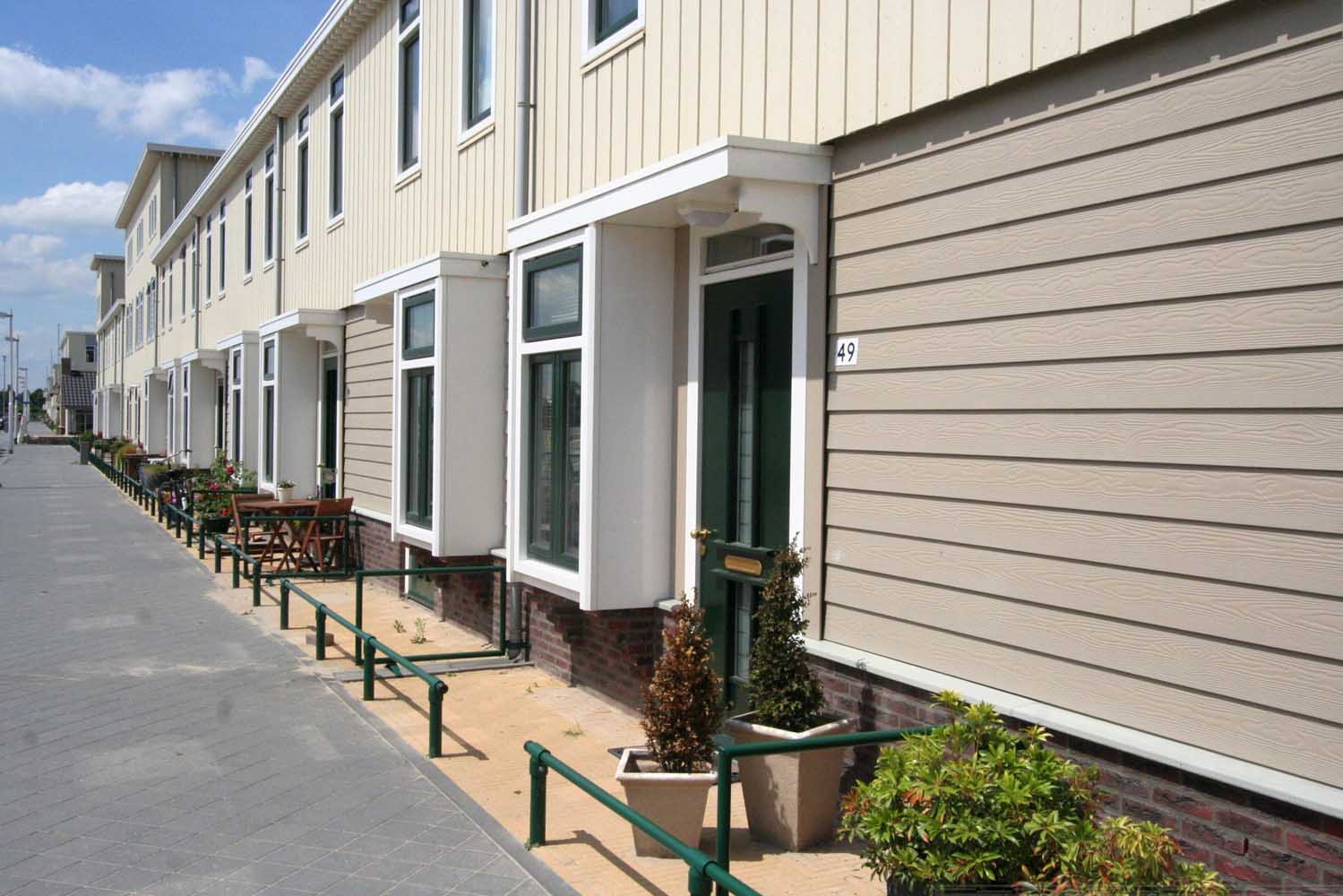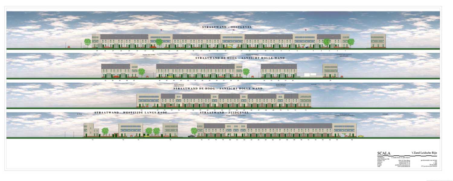 Voor de woningen is een materialen- en kleurenpalet gekozen conform het plandeel dat Scala voor VABO realiseert. De woningen zijn echter strakker ontworpen waarbij geleding en detail niet zijn vergeten. De rijwoningen die met de tuin aan de waterkant grenzen hebben aan de straat een berging en veranda.