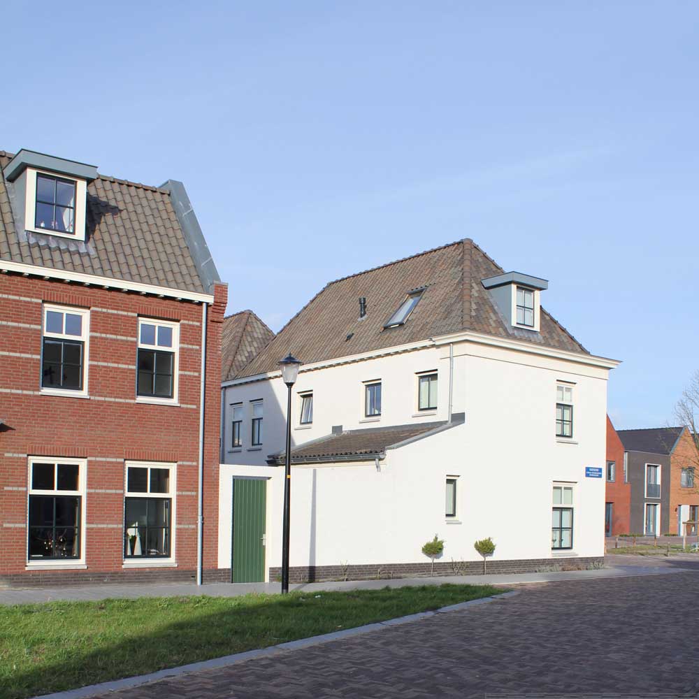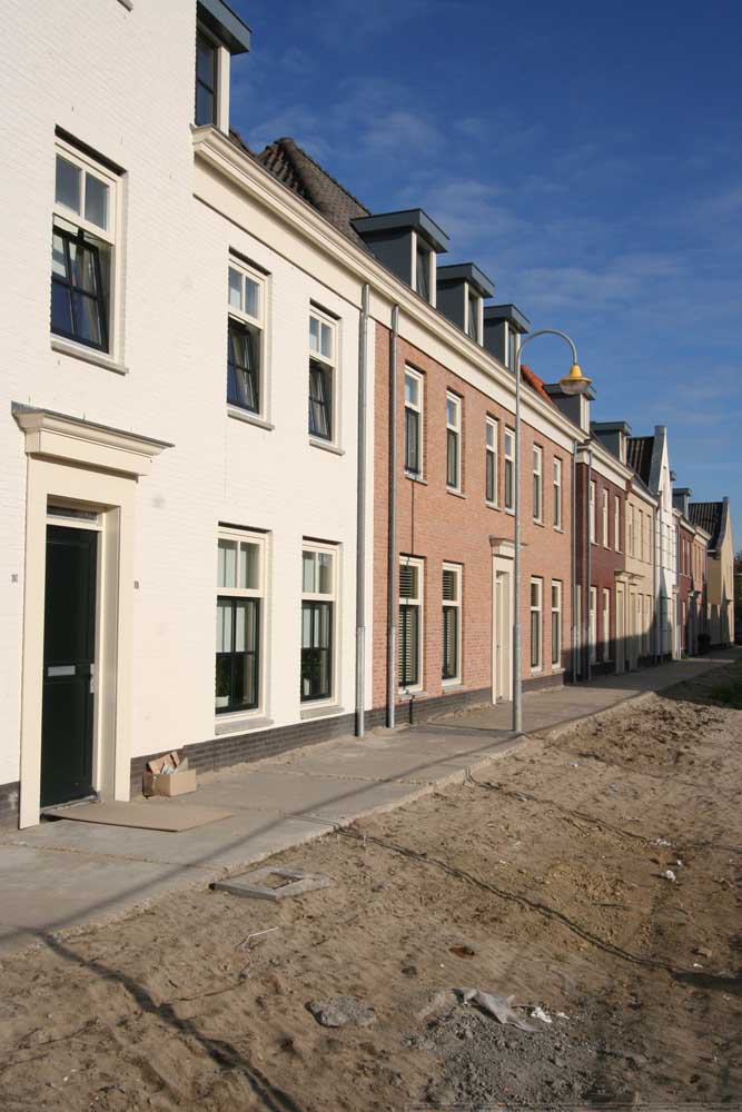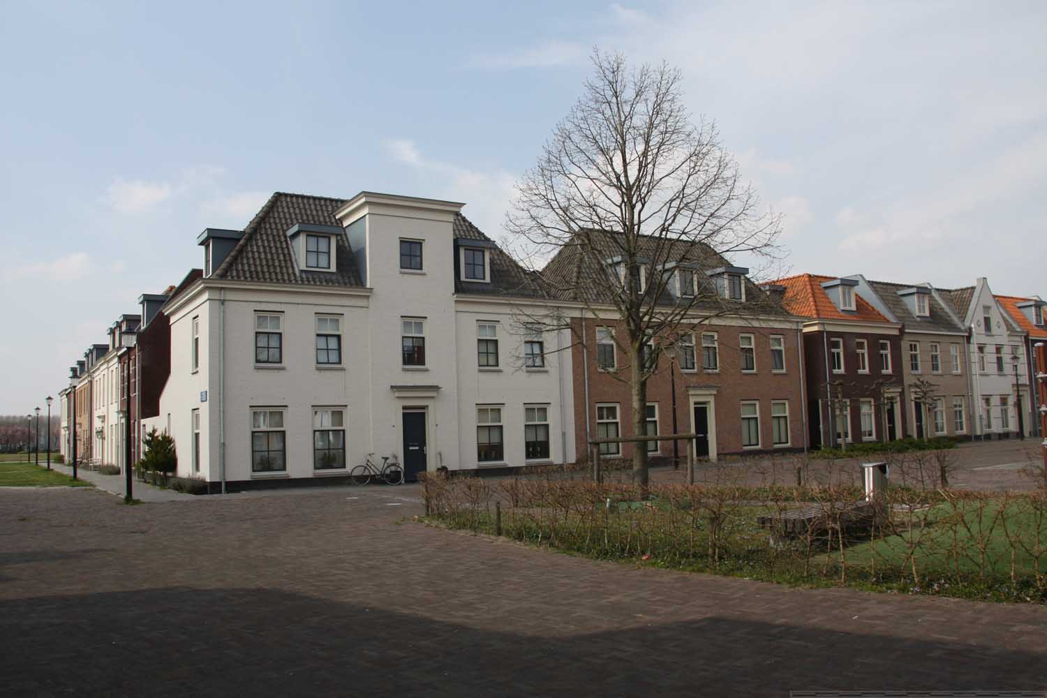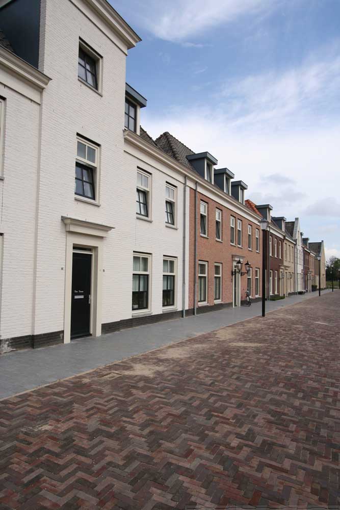-bereikbaar door een poort. Dor kleine verschilen in woningbreedte, gevelbehandeling en kappen is een levedig straatbeeld ontstaan dat recht doet aan het plangebied waar de auto van de straat is gehaald. Het informele, kleinstedelijke karakter verwijst naar de binnnenstad van Culemborg.