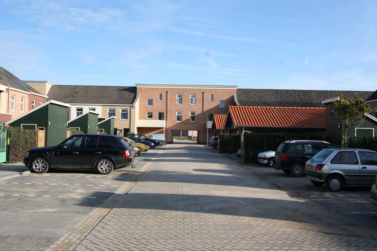 Het bouwblok ligt rond de achtertuinen en een parkeerplaats